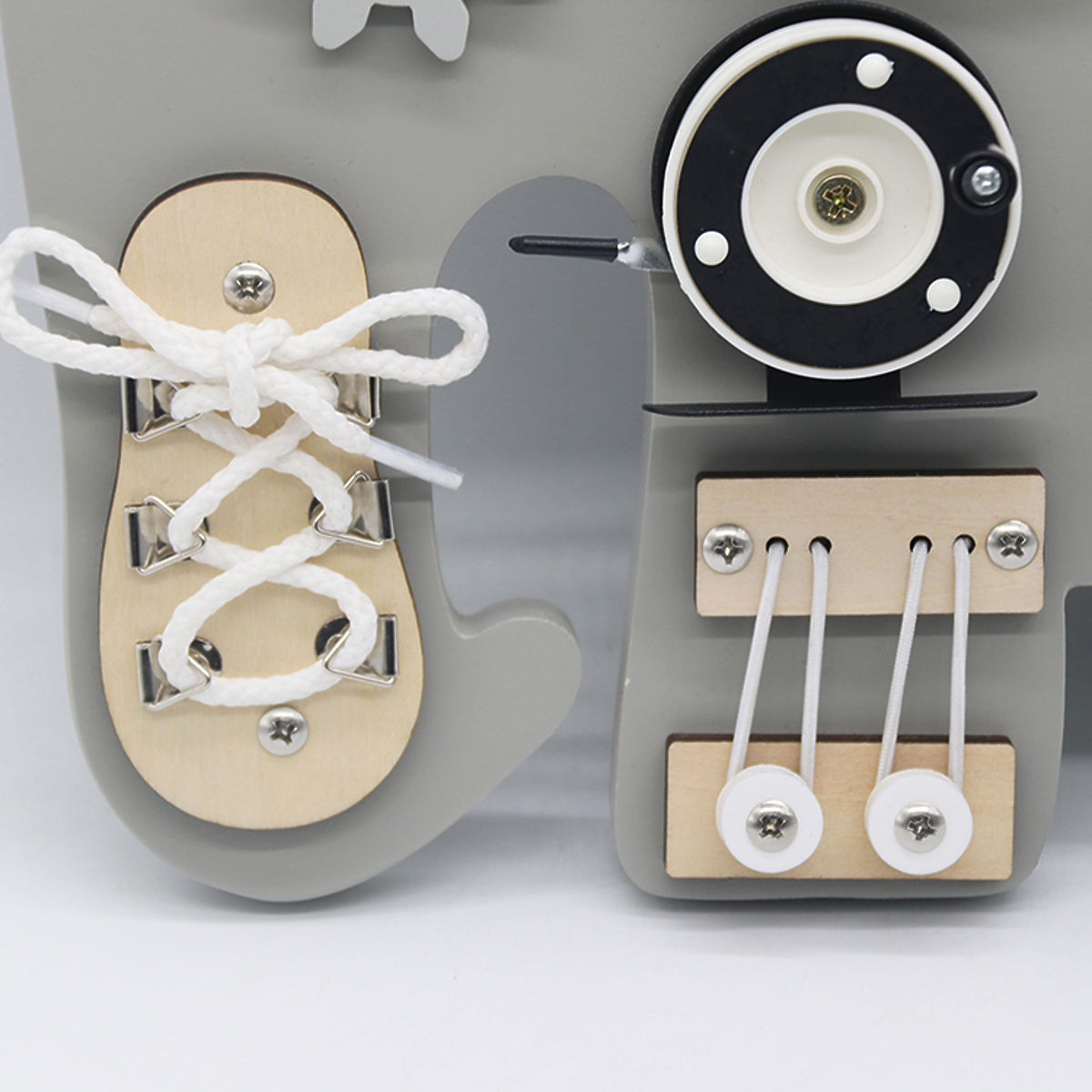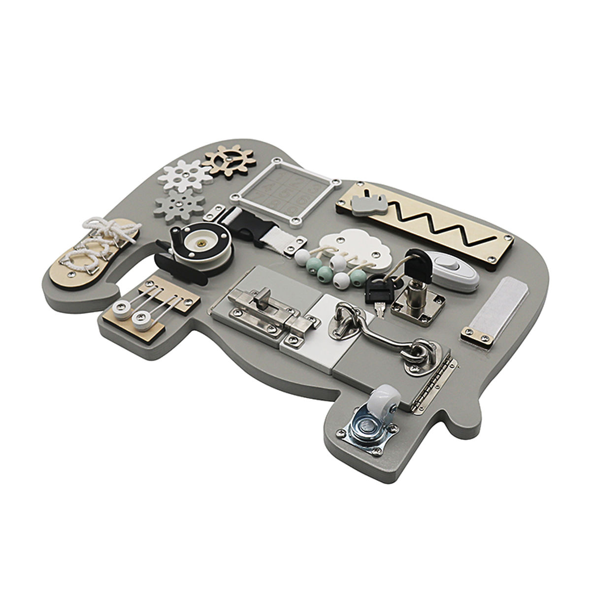 Montessori-Abenteuer auf einer Tafel? Lernen durch Spielen war noch nie so unterhaltsam und niedlich. Kleine Finger stürzen sich auf Schlösser, Räder und Schalter auf der Holztafel, die nicht nur spielerisch, sondern auch motivierend für die Entwicklung von Fähigkeiten ist. Die schöne Elefantenform zieht die Aufmerksamkeit der Kinder auf sich, während eine Vielzahl von Aktivitäten das Entdecken durch Sinne, Kreativität und Konzentration fördert.