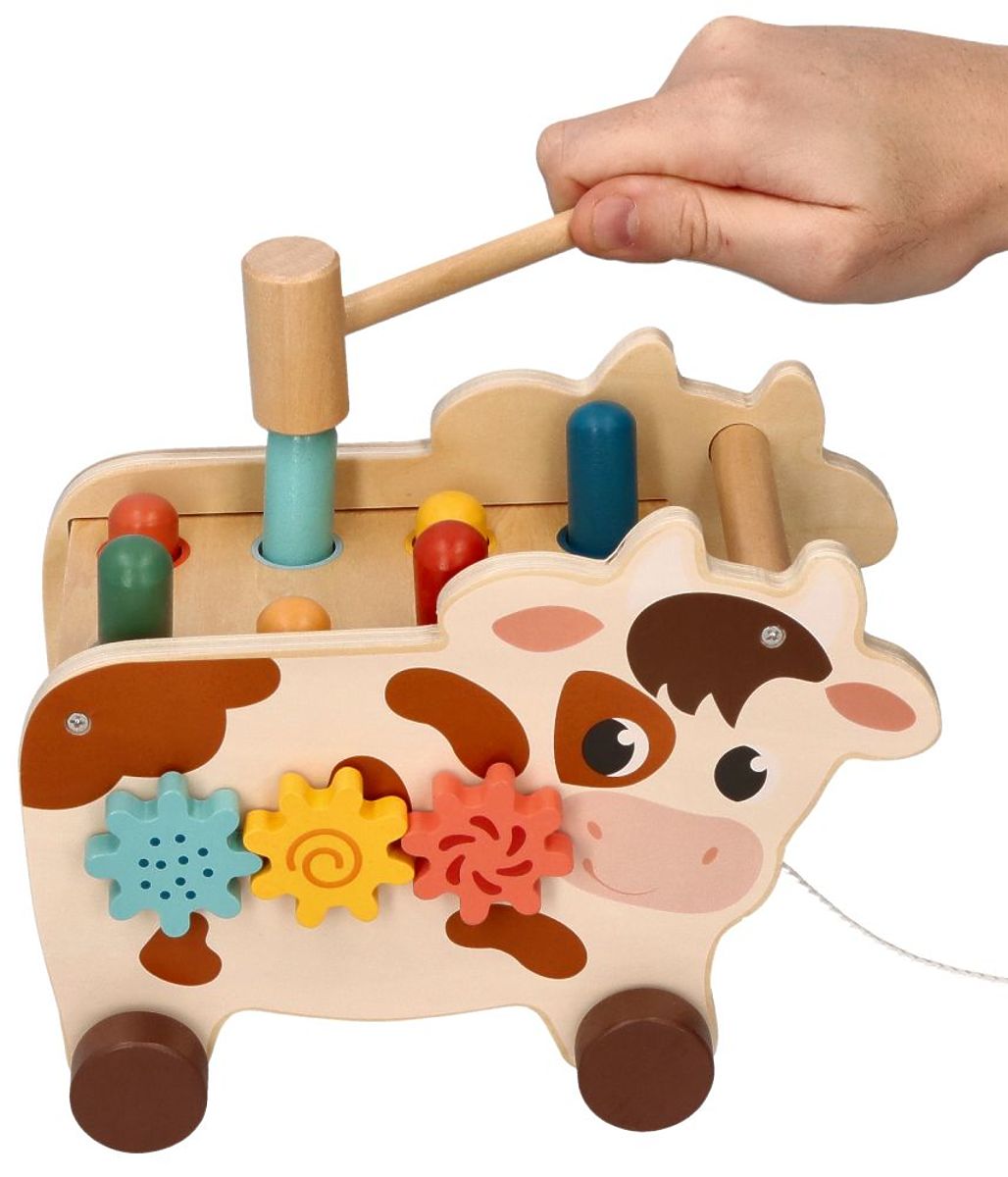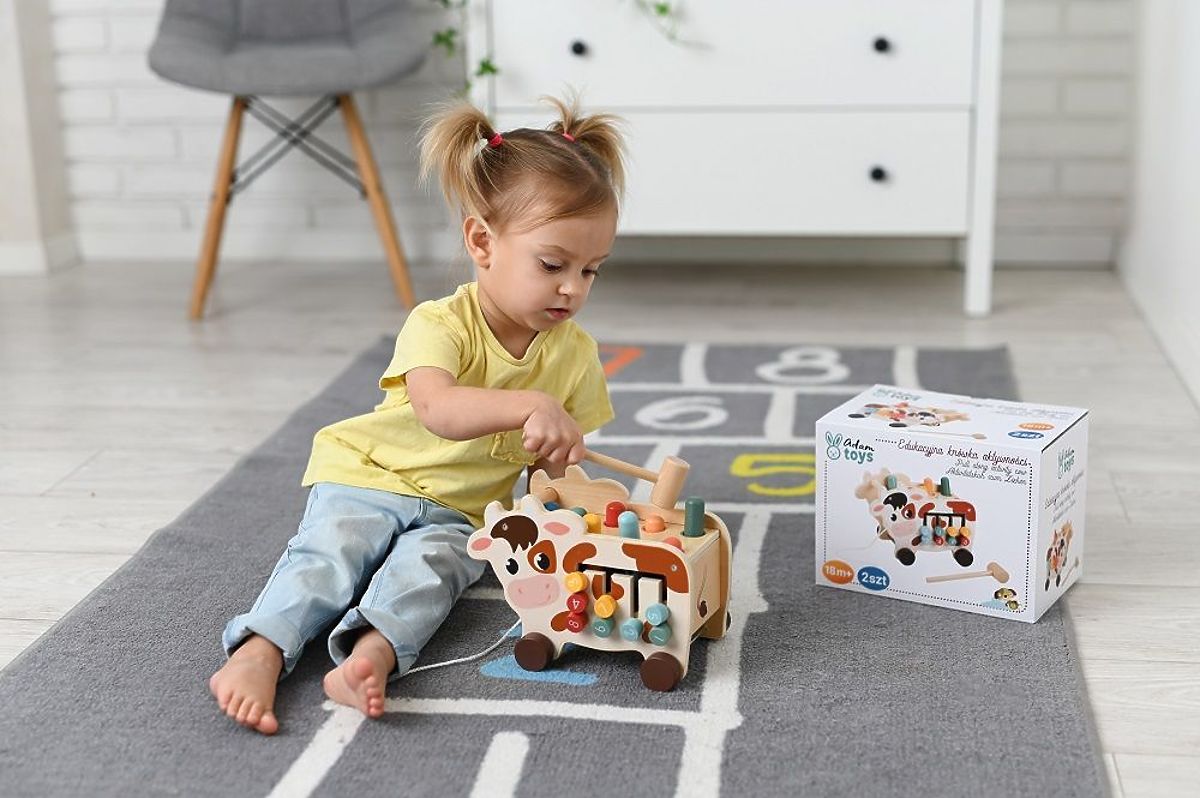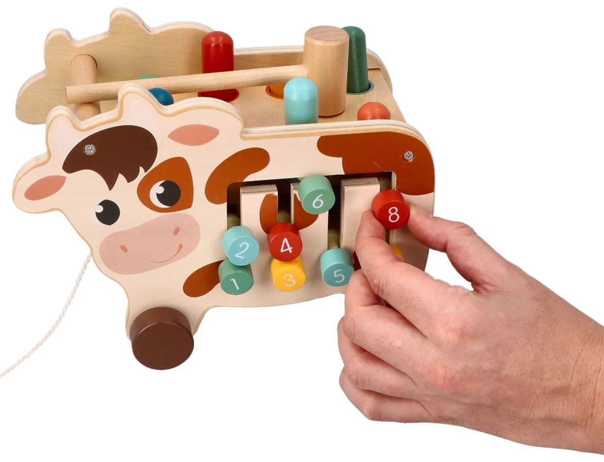 Durch das Spielen mit der Kuh entwickelt das Kind seine natürliche Neugier, lernt kreatives Denken und fördert die Vorstellungskraft. Die schönen Farben und die ästhetische Ausführung des Spielzeugs beeinflussen die Wahrnehmung des Kindes erheblich und gewöhnen es an neue Farbtöne. Die süße Kuh ist ein Holzspielzeug, das nicht nur unterhält und lehrt, sondern auch bei Kindern sehr beliebt ist.