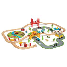 Dieses Spielset ist die ideale Kombination aus einer Holzeisenbahn und einer Bigjigs-Autobahn. Die Eisenbahn verbindet sich natürlich mit Hilfe einer Brücke und .. mehr