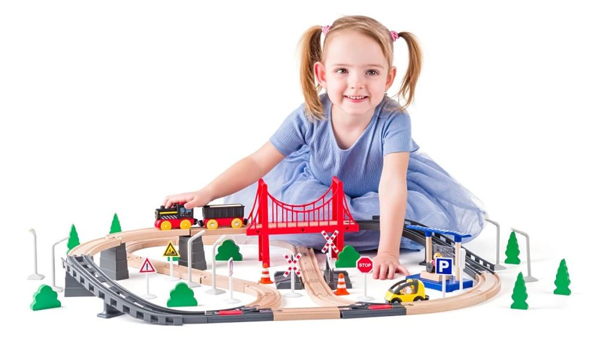 Die Elemente der Eisenbahn sind kompatibel mit Produkten anderer Hersteller wie Brio, IKEA, ELC, Little Steps, Eichhorn, Woodyland, Tesco, Carousel usw., sodass es einfach ist, die Eisenbahn zu erweitern.