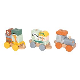 Klappen Sie es zusammen und verlassen Sie die Station! Dieser Holzzug in trendigen Farben fährt erst los, wenn alle Fahrgäste eingestiegen sind – ein Zebra, ein Elefant, eine Giraffe und ein Krokodil. Der Zug mit vielen Details ist auch ein Steckspielzeug, das Kindern beim Zusammenklappen Freiheit gibt – jeder Würfel passt an mehrere Stellen. Nächster Halt: Safari! Das Spielzeug trainiert die Motorik der Kinder. Hauptmerkmale: illustrierte, pastellfarbene Lokomotive, 2 Wagen und 13 Teile