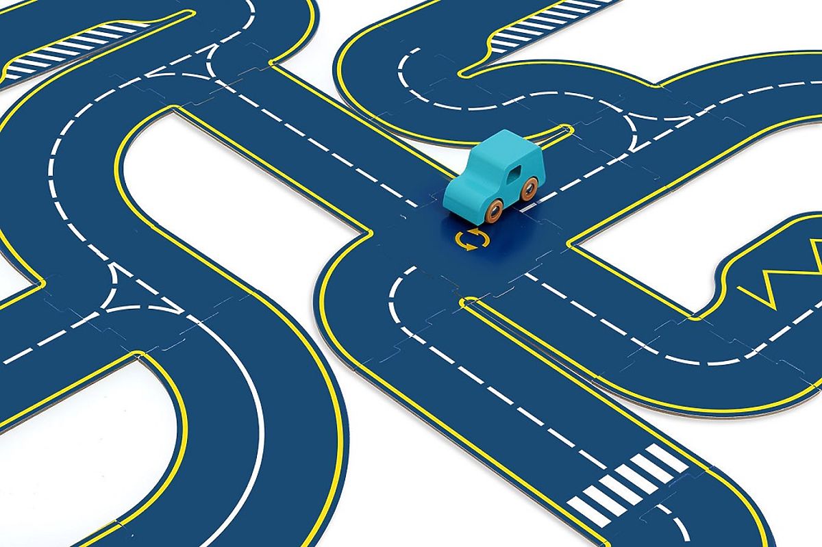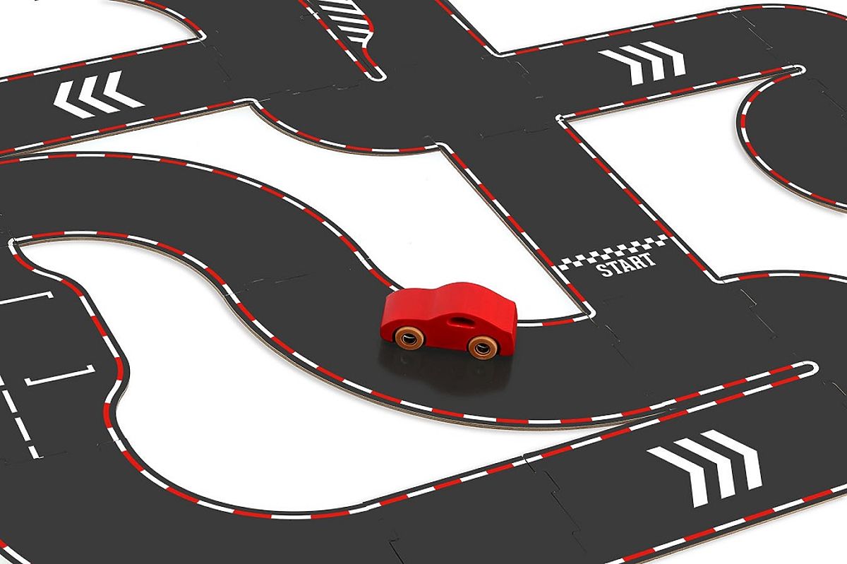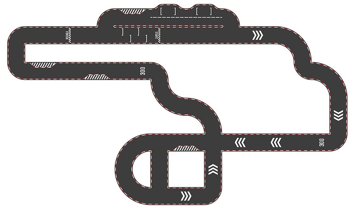 Beidseitiger Kartonparcours mit Rennstrecke und klassischer Straße. .. mehr