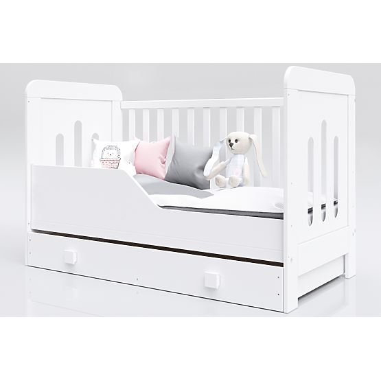 Das stilvolle, weiße Babybett Zuza 140 x 70 cm ist mit oder ohne Stauraum erhältlich. Geeignet für Kinder von der Geburt bis zu einer Körpergröße von 120 .. mehr