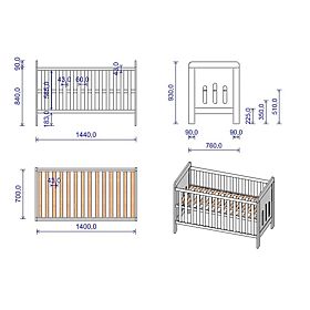 • 2 abnehmbare Schlupfsprossen mit denen Kinder in einem späteren Alter das Kinderbett unabhängig benutzen können