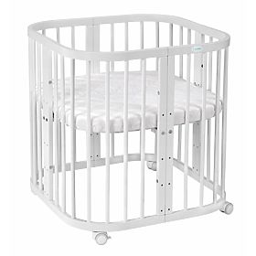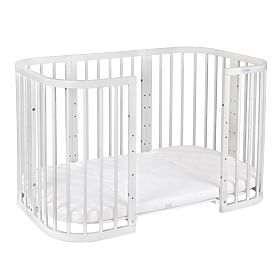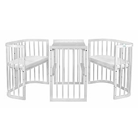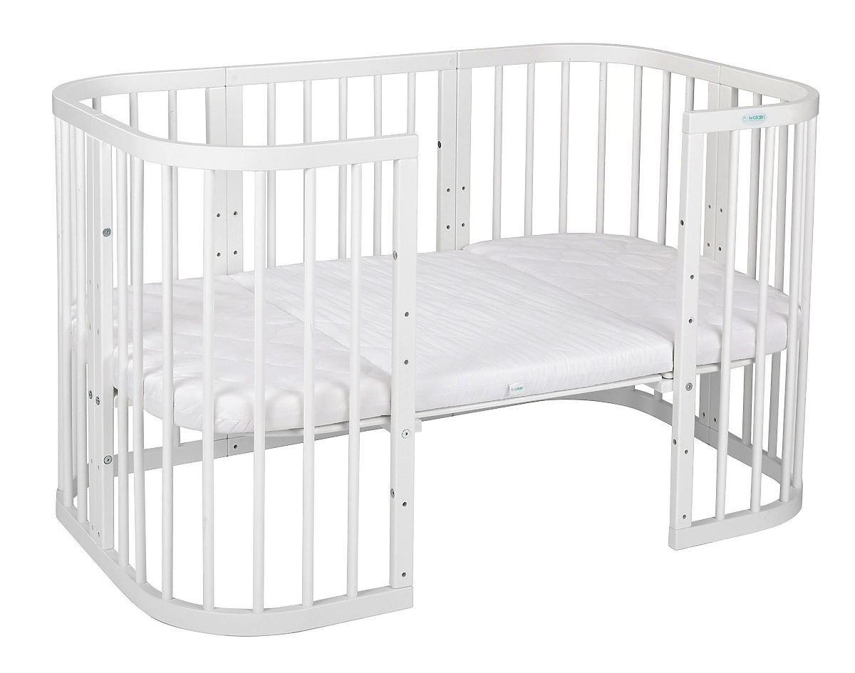 Dieses mitwachsende Bett bietet 7 verschiedene Umwandlungsvarianten, die den Bedürfnissen von Kindern unterschiedlichen Alters hervorragend entsprechen. Eine davon ist die sehr nützliche Variante als Beistellbett für das Elternbett, die Sie besonders in den ersten Lebenswochen Ihres Babys schätzen werden.