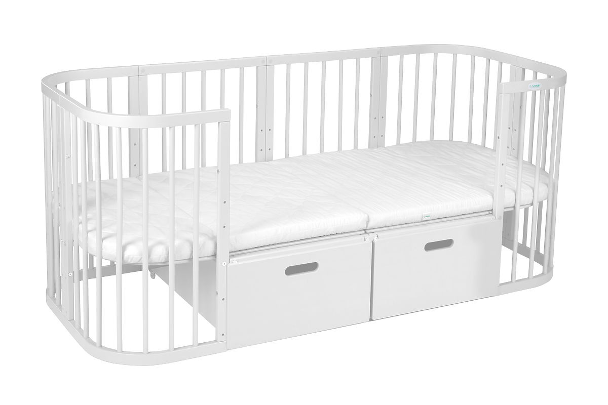 Das Bett wurde basierend auf den Bedürfnissen der Eltern entworfen, die sich ein schönes und praktisches Möbelstück wünschen, das viele Jahre und nicht nur einige Monate verwendet werden kann.