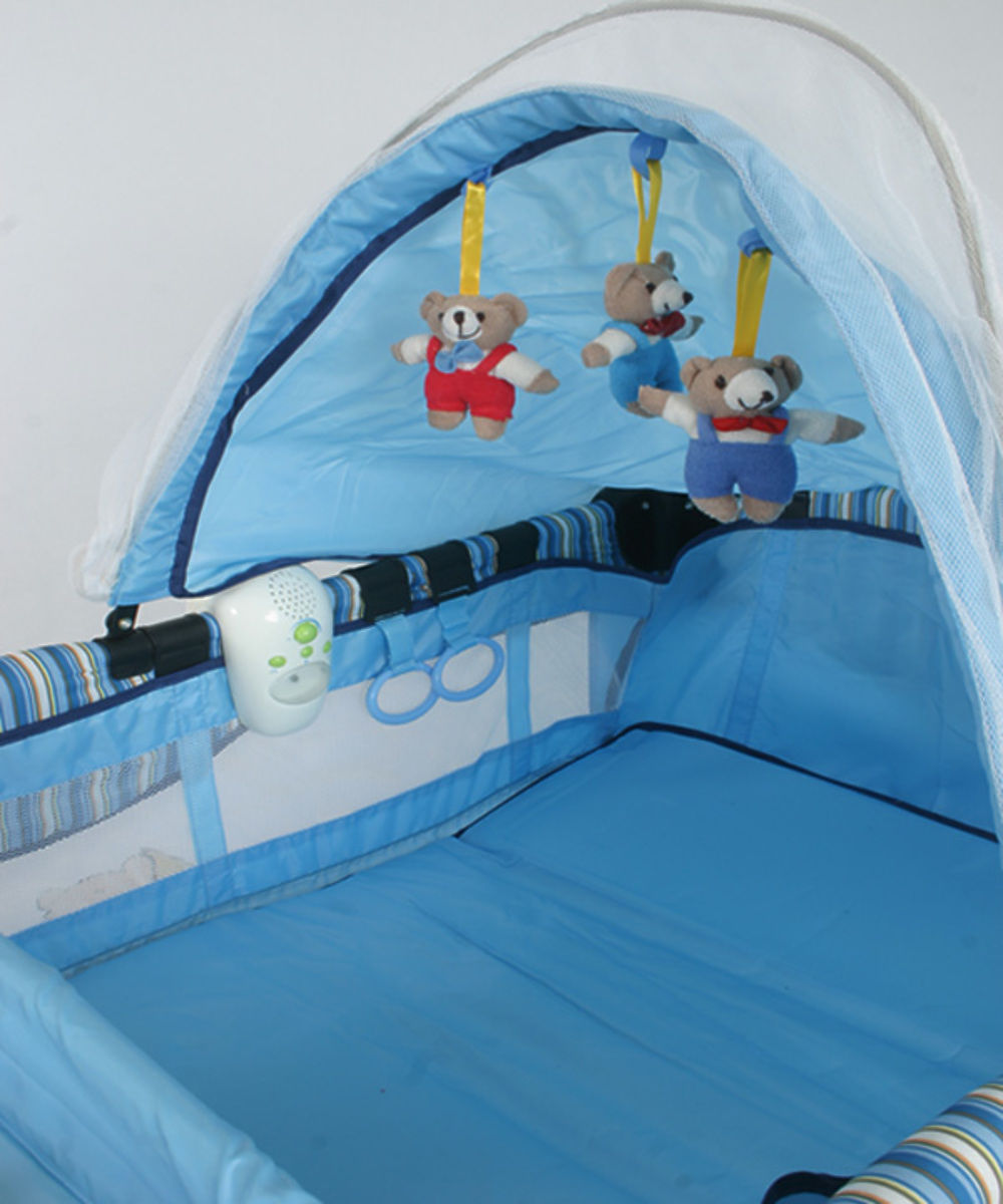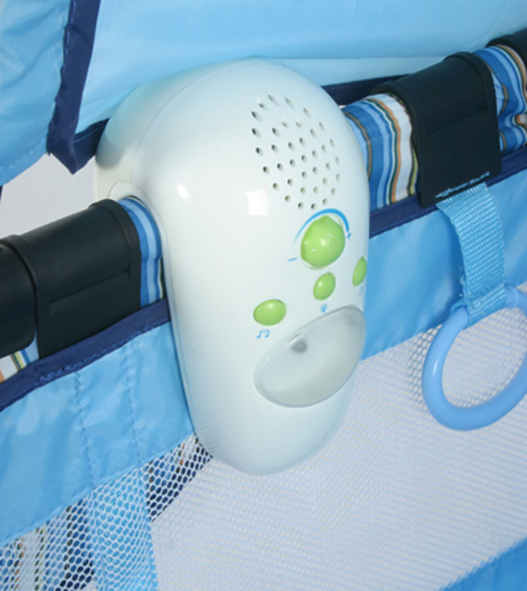 Reisebett positioniert den Boden und She können auf insgesamt zwei Ebenen abholen. S erste, oben, hat eine Kapazität von 15 kg, und die andere, untere, hat ein Fassungsvermögen von 20 kg. Reisebett mit Lampe und Musik ausgestattet, mit denen es möglich ist, um die Lautstärke einzustellen.
