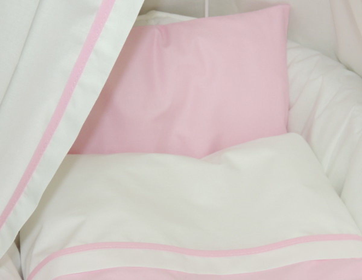 Des Weiteren bekommen Sie auch einen kompletten Satz mit Kissen und Bettdecke inklusive Bettwäsche, die in rosa Farbe gehalten ist. Der Korb steht auf einer Holzkonstruktion mit Rädern, was eine bessere Manipulation gewährleistet. Die Konstruktion wurde mit einem ökologischen Lack behandelt, was dem Bett wiederum höhere Haltbarkeit und mehr Schönheit verleiht Die Lieferung beinhaltet noch eine schneeweiße Spitze und ein weißen Baldachin.