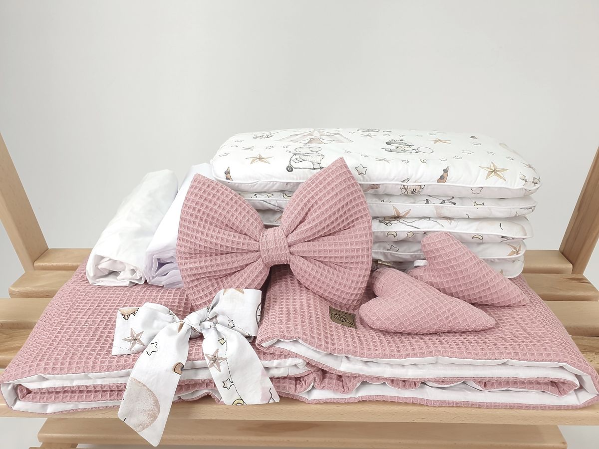 Dieses Weidenkörbchen schafft überall im Haus einen perfekten und gemütlichen Schlafplatz für Ihr Baby. Der weiße Korb enthält ein 5-teiliges Bettwäscheset mit Zirkusmotiv aus attraktiver Waffelbaumwolle.