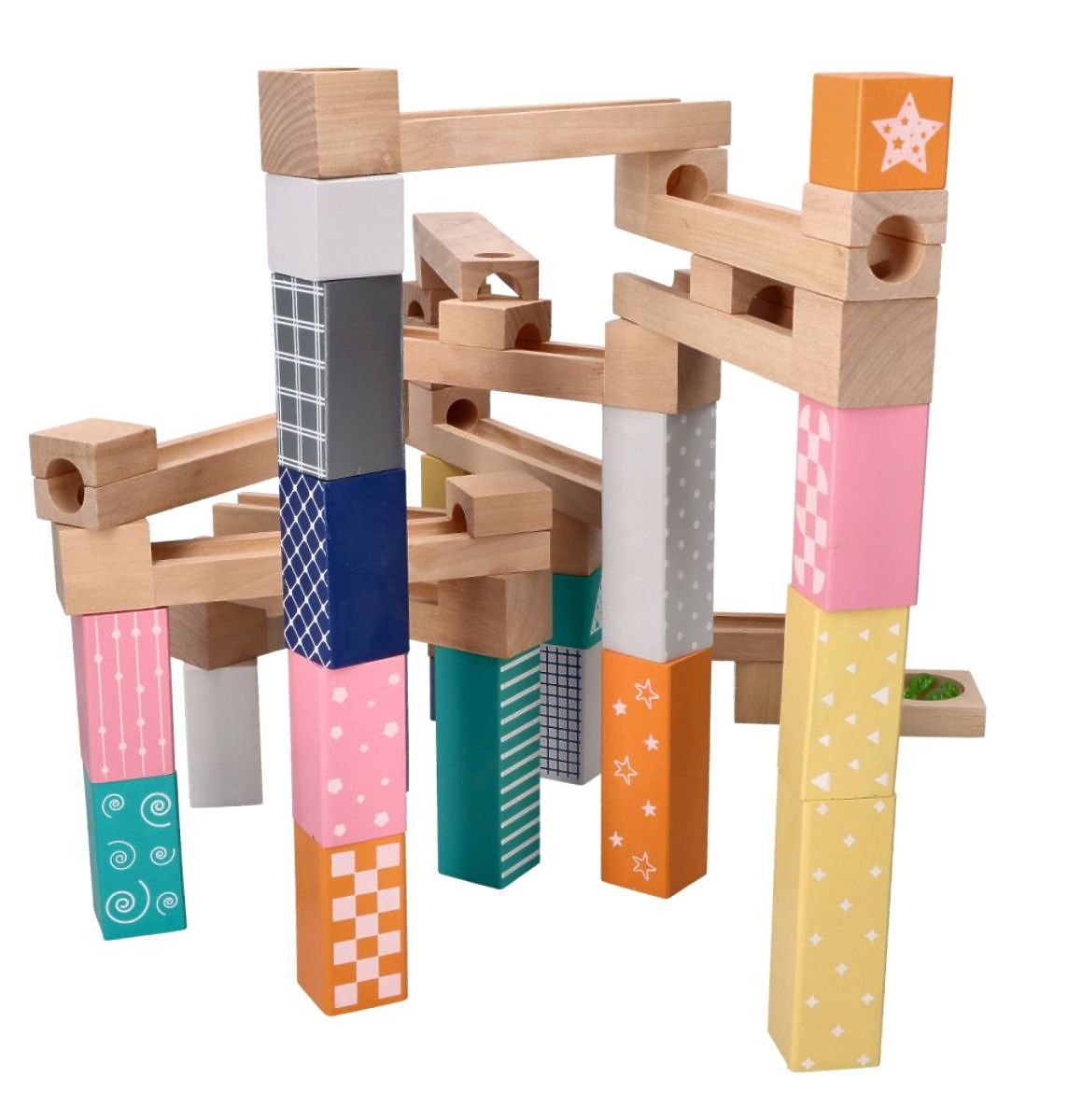 Ein fantastisches Spielzeug für die ganze Familie, das es ermöglicht, gemeinsam Zeit beim Bau immer neuer Konstruktionen zu verbringen. In diesem Fall sind die Elemente aus Holz und die Kugeln aus Glas, was die Haltbarkeit des Spielzeugs garantiert. Testen Sie Ihre Kreativität, indem Sie immer neue Strecken für die schnell rollenden Kugeln entwerfen.