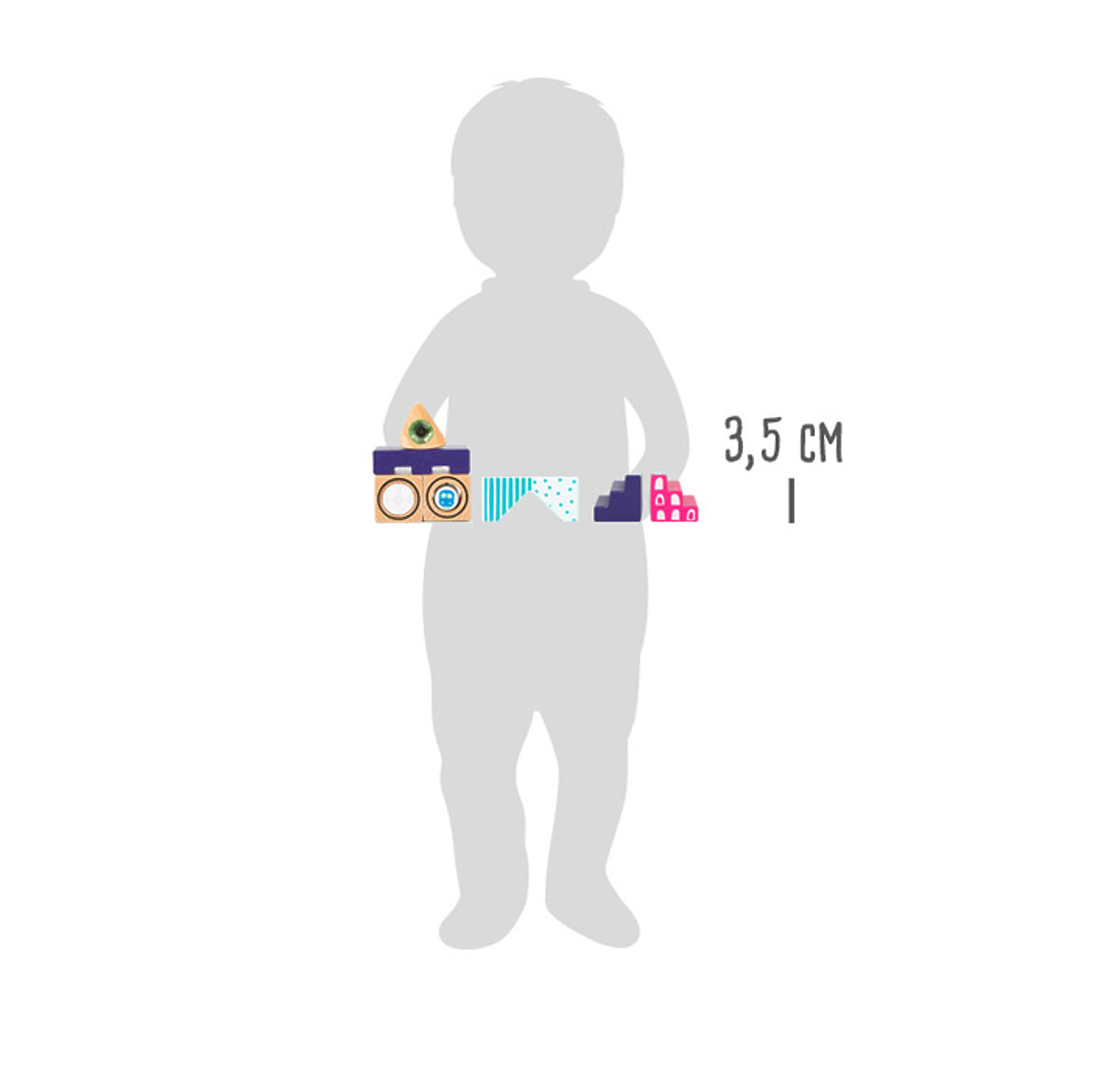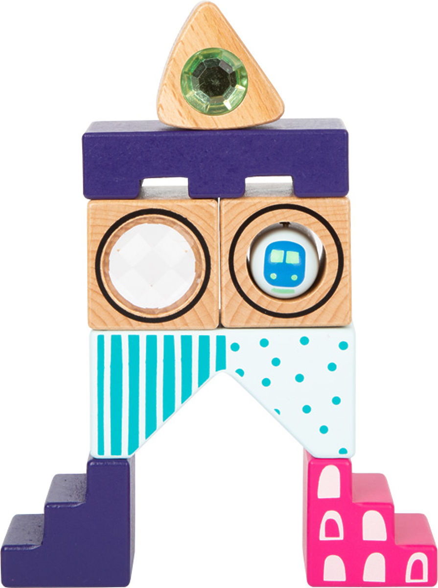 Ideal zum Bauen, Stapeln, Lagern und Entdecken! Die Fantasie-Bausteine aus Holz begeistern selbst die kleinsten Kinder. Spannende visuelle und haptische Effekte, Rasseln, Prismen, leuchtende Farben und Formen, kleine Steine und ein fahrender Zug stimulieren die Sinne und sorgen für langanhaltenden Spaß. Beim Zusammenbauen üben die kleinen Baumeister ihre Bewegungskoordination und Feinmotorik, während die fantasievollsten Kunstwerke entstehen. Ideal zur Kombination mit natürlichen Holzbausteinen! Hochwertige Verarbeitung, leicht zu greifen und ideal für Kinderhände. In der stabilen Geschenkverpackung können die Bausteine sicher aufbewahrt werden! Mit diesen speziellen, sinnlich stimulierenden Bausteinen leuchten Kinderaugen vor Freude! Hauptmerkmale: Sensorische Bausteine zur Sinnesstimulation, Auffällige Farben und Formen der Bausteine