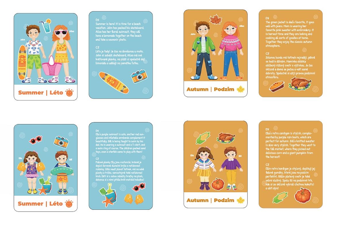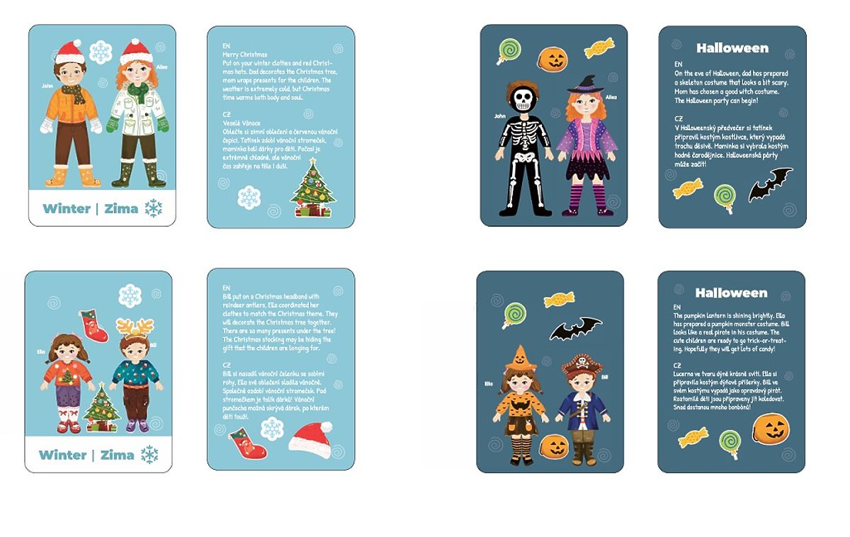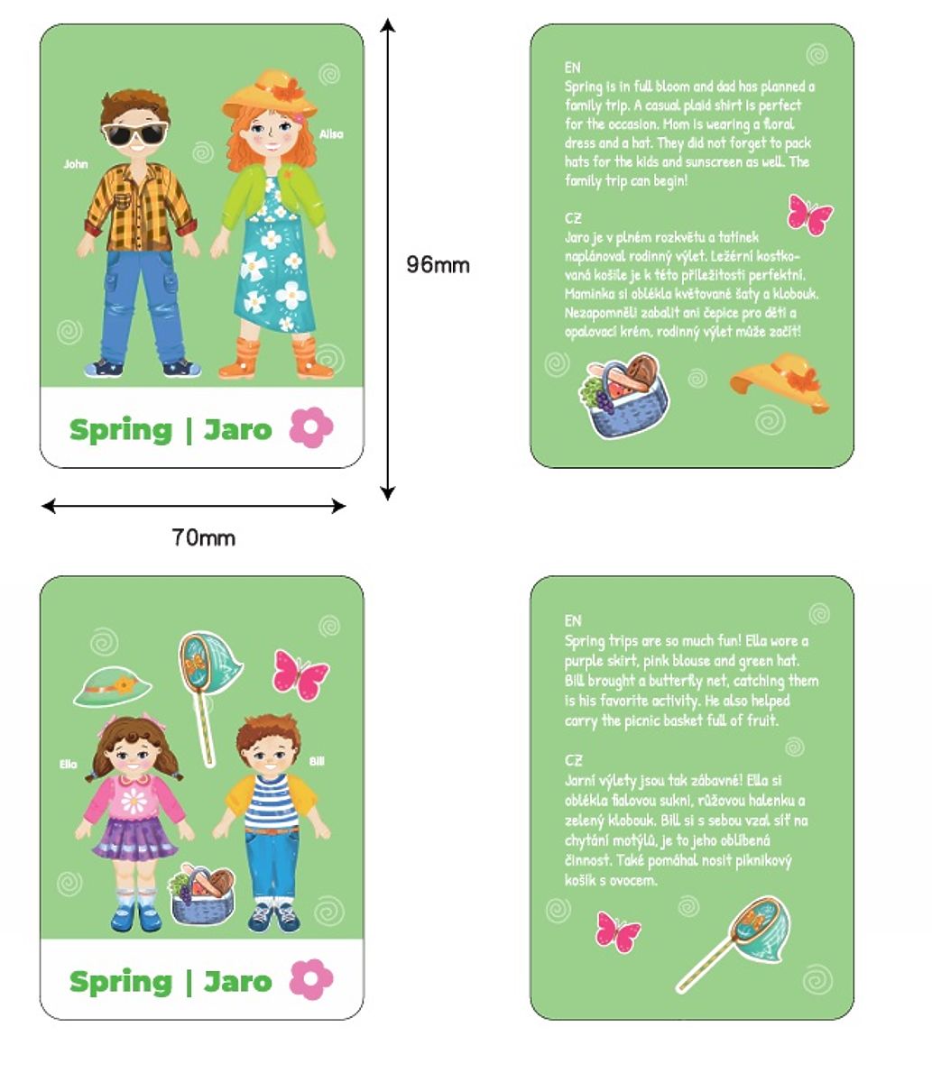 Kleiden Sie die ganze Familie je nach Jahreszeit, Stimmung oder lustiger Aufgabe! Das magnetische Set „Happy Family“ bietet viel kreative Unterhaltung beim Entwerfen von Outfits für Mama, Papa, Mädchen und Jungen. Jedes Familienmitglied hat seine eigenen magnetischen Kleidungsstücke, Accessoires und einen einzigartigen Stil – es liegt ganz an der kindlichen Fantasie, wie sie angezogen werden. Das Set enthält auch thematische Karten, die Kinder zu bestimmten Aufgaben inspirieren – z.B. Kleidung für den Sommer oder Herbst, einen Ausflug an den Strand, das Backen eines Kürbiskuchens oder die Herbsternte oder Winterfreuden. So lernen Kinder spielerisch über die Jahreszeiten, entwickeln ihre Vorstellungskraft und üben gleichzeitig ihre Feinmotorik. Hauptmerkmale: Holzkiste mit Magneten und drehbarer Tafel4 Figuren zum Ankleiden (Mama, Papa, Tochter, Sohn)mehr als 80 magnetische Kleidungsstücke und Accessoires8 beidseitig bedruckte Karten mit Geschichten auf Tschechisch und Englisch (Frühling, Sommer usw.)fördert Feinmotorik, Fantasie und das Verständnis der Jahreszeitenfür Kinder ab 3 Jahrenideal für das Spielen zu Hause und unterwegs