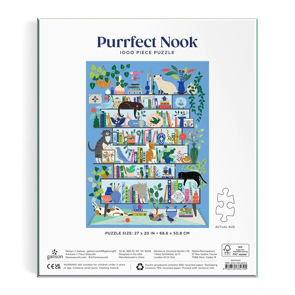 Katzen sind so niedlich! Das Puzzle, inspiriert von Flora Waycott, erfreut Liebhaber von Katzen, Büchern, Pflanzen und Dekorationen. Es zeigt neugierige Katzen, die ein Regal voller Bücher, Pflanzen und verschiedener Dekorationsgegenstände erkunden und sich dort wie zu Hause fühlen. Ob Sie eine unterhaltsame Aktivität für einen regnerischen Tag oder ein einzigartiges Geschenk für Katzen- oder Bücherliebhaber suchen, dieses Puzzle wird sowohl Kinder als auch Erwachsene begeistern und zu einem attraktiven Wohnaccessoire werden. Das Puzzle wird verantwortungsvoll unter Verwendung eines hohen Anteils an FSC®-zertifiziertem Recyclingpapier hergestellt und mit ungiftigen Farben bedruckt. Hauptmerkmale: hergestellt aus recycelten und nachhaltig gewonnenen Materialien, bedruckt mit ungiftigen Farben, enthält ein Anleitungsposter, fördert logisches Denken, Motorik und Hand-Auge-Koordination. Die Marke und das FSC®-Zertifikat (Forest Stewardship Council) garantieren, dass das Holz, aus dem das Produkt hergestellt wurde, nicht illegal geschlagen wurde und aus Wäldern stammt, die schonend oder naturnah bewirtschaftet werden, wobei strenge Umwelt- und Sozialanforderungen eingehalten werden. Das FSC®-Label auf dem Produkt bedeutet, dass Sie durch Ihren Kauf helfen, Wälder zu schützen und eine schonende, verantwortungsvolle oder naturnahe Bewirtschaftung zu unterstützen, wodurch unsere Wälder stabiler, gesünder, eine natürliche Artenzusammensetzung haben und besser gegen die negativen Folgen des Klimawandels gewappnet sind.