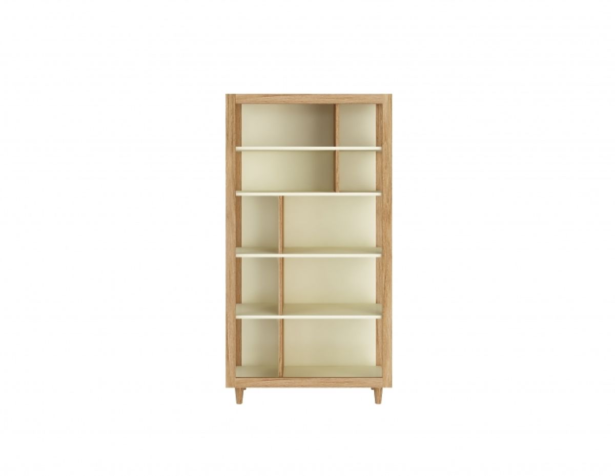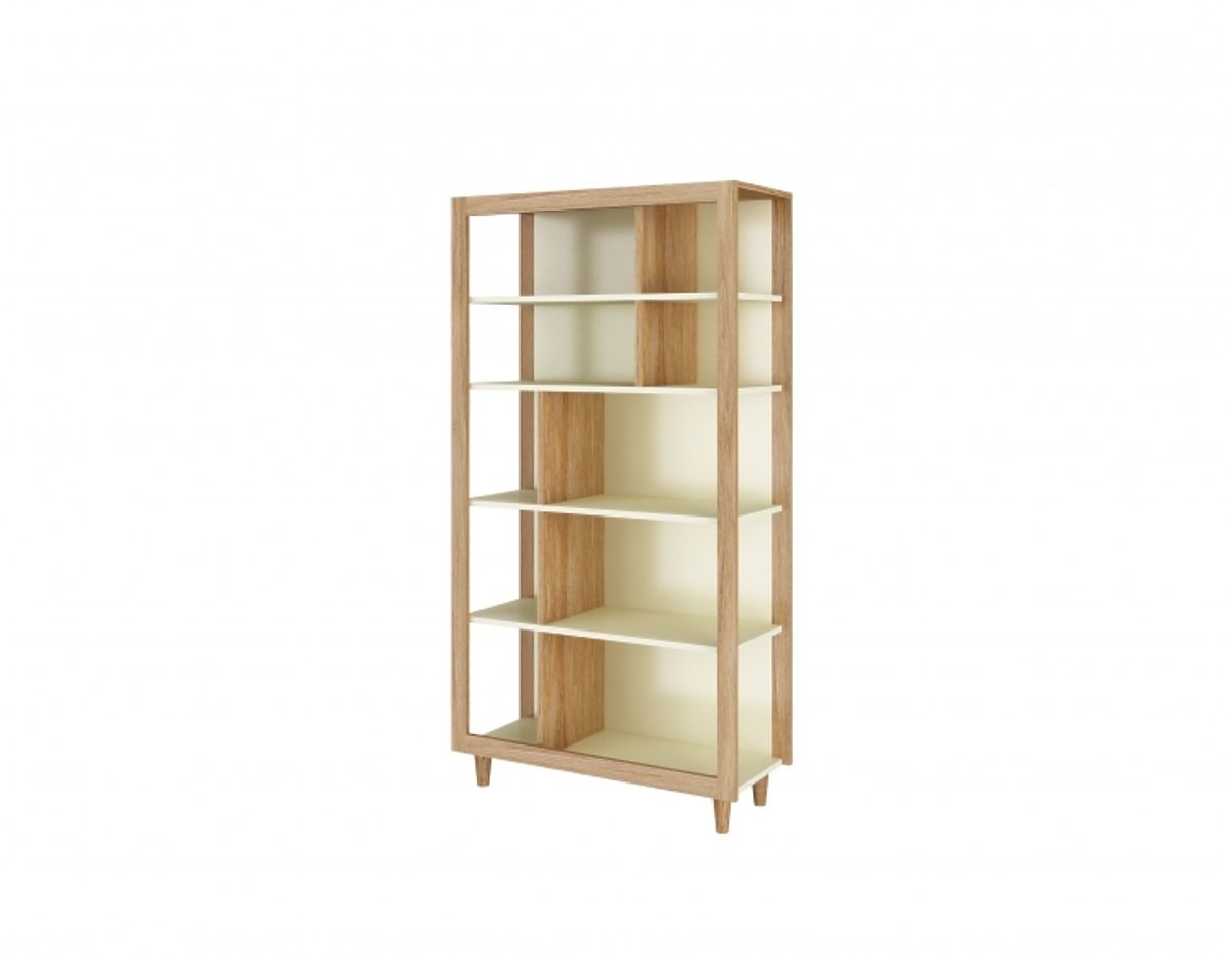 Bücherregal Plan, wie die Dinge zu speichern, sowie ein modernes Element in seinem Innern. Zweifarbkombinationen und weiche Creme Farben und Eiche sehen sehr schön aus und bringen im Raum Eleganz und Stil.