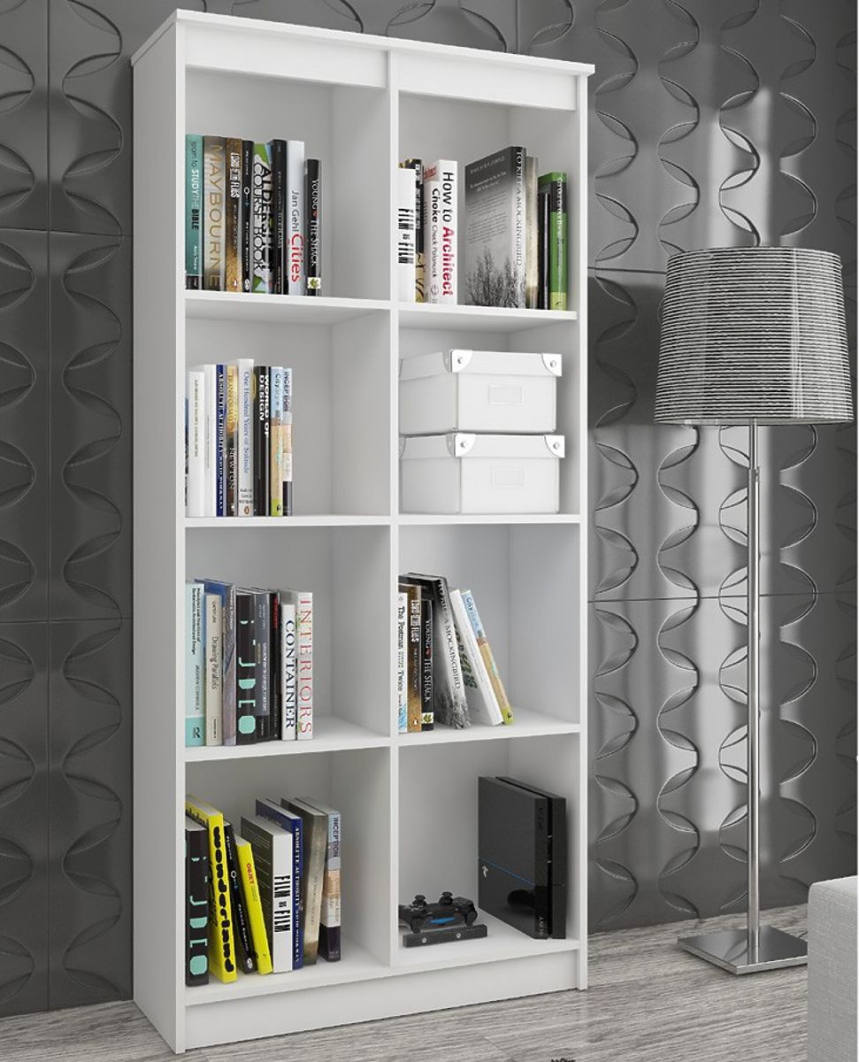Das Büroregal eignet sich perfekt für jedes Zuhause oder jede Wohnung. Sie können dort Ihre wichtigsten Bücher und Ordner aufbewahren. Immer mehr Büros bestellen solche einfachen und eleganten Möbel, um den Arbeitskomfort zu verbessern. Das weiße Regal passt sicherlich zu Ihrer Umgebung. Acht einzigartig angeordnete Fächer ermöglichen die Aufbewahrung aller notwendigen Dokumente und Büroaccessoires. Seine Universalität und hohe Qualität garantieren ein einzigartiges Möbelstück für Sie.
