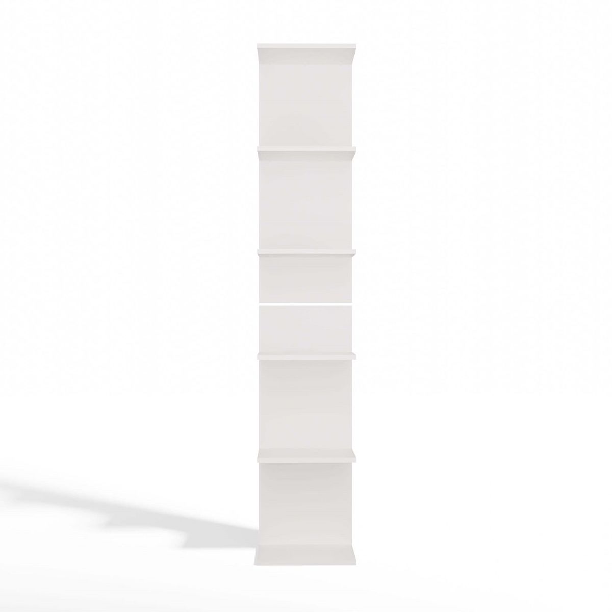Das Regal 6P ist ein minimalistisches und funktionales Möbelstück, das sich hervorragend für das Wohnzimmer, Büro, Studentenzimmer oder die heimische Bibliothek eignet. Dank der leichten, modernen Form und der neutralen weißen Farbe lässt es sich leicht in viele Innenraumgestaltungen integrieren.