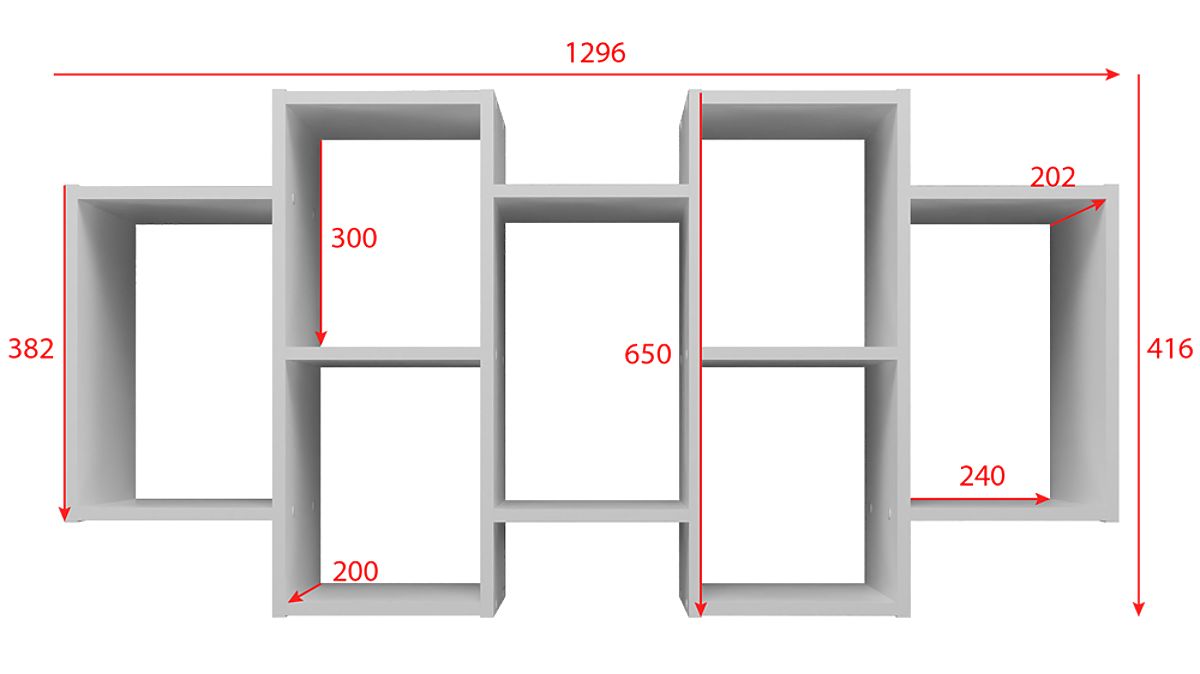 - Das Regal besteht aus einer laminierten Möbelplatte mit einer Dicke von 16 mm