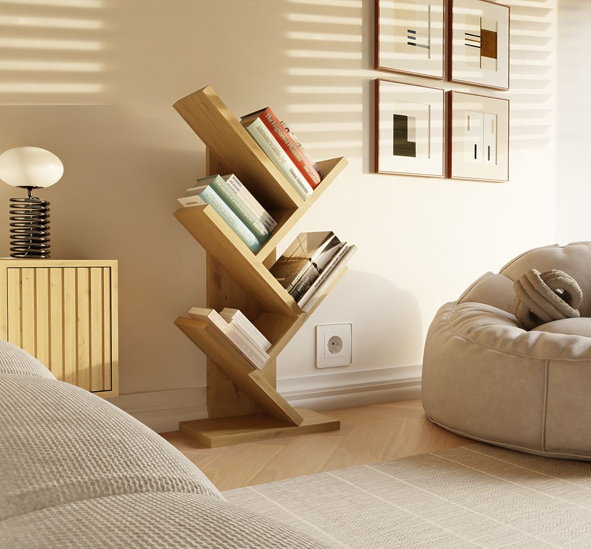 • 4 schräge offene Regalböden – ideal für Bücher, Ordner, Dekorationen oder Spielzeug