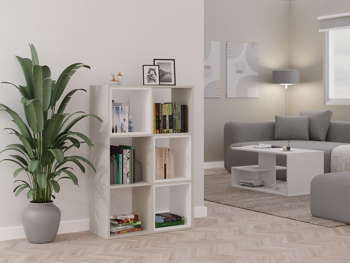 Der Regal MALAX 2X3 ist eine Kombination aus modernem Design und Funktionalität, die sich perfekt in verschiedene Innenräume einfügt. Seine Einfachheit und Eleganz machen ihn nicht nur zu einem praktischen, sondern auch zu einem ästhetischen Einrichtungselement.