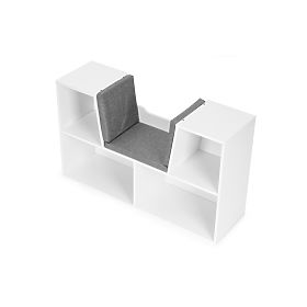 Dank seiner schlichten Form fügt sich das Regal mit Sitz perfekt in jede Art und jeden Charakter des Innenraums ein, im Flur dient es als funktionelles Möbelstück zur Aufbewahrung von Schuhen und dank einer besonderen Funktion als Helfer beim Anziehen Platz, an dem das Kind beim Schuheanziehen bequem sitzen kann. Im Kinder- oder Spielzimmer dient das Regal als toller Stauraum und sorgt vor allem für Ordnung. In geräumigen Regalen und Fächern finden Lieblingsbücher, Spielsachen und alles, was Ihr Kind gerne griffbereit hat, Platz.