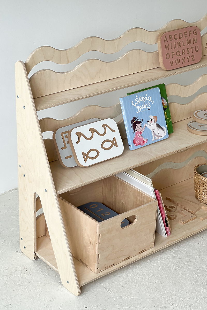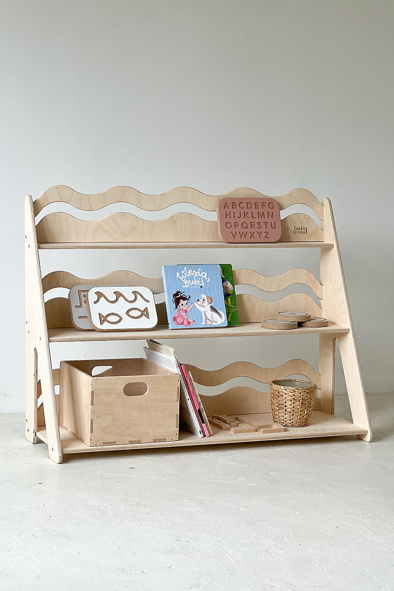 Praktisches Regal für Kinderzimmer mit gewellten Frontleisten. .. mehr
