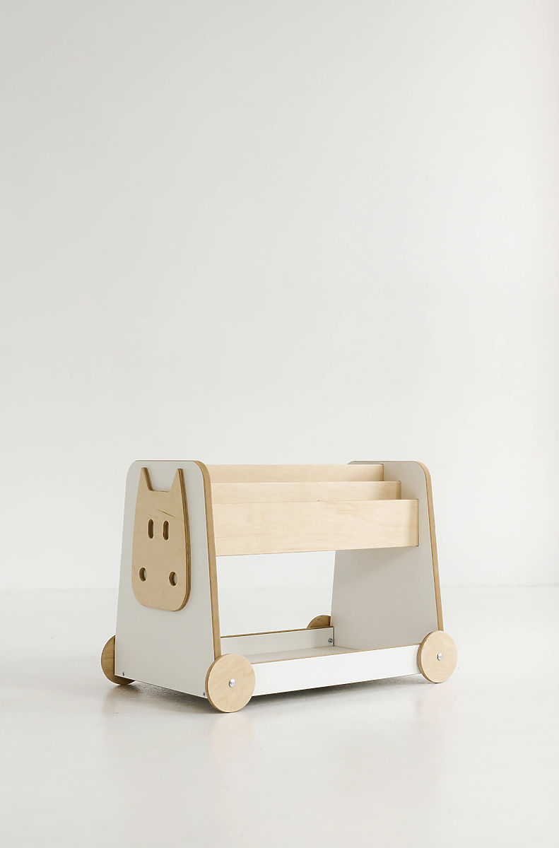 Holzspielzeugregal mit Rollen für einfache Bewegung im Kinderzimmer. .. mehr