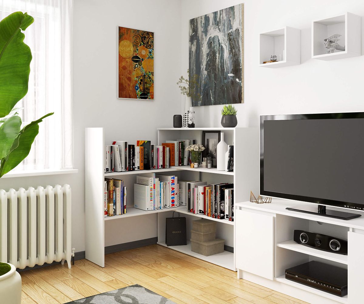 Einzigartiges verstellbares Regal Mini TWIST, das auseinandergeklappt oder als Eckregal gestaltet werden kann. Dank seiner Eigenschaften eignet es sich ideal für jeden Wohnraum, jedes Büro oder Kinderzimmer.