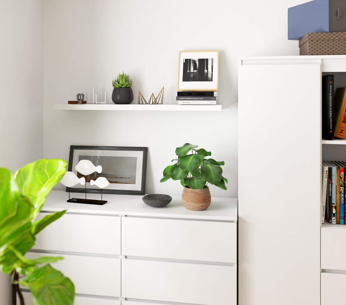 Hergestellt aus abriebfestem laminiertem Plattenmaterial. Die Kanten sind mit Melamin beklebt. Unsichtbare Wandhalterungen sind im Lieferumfang enthalten.