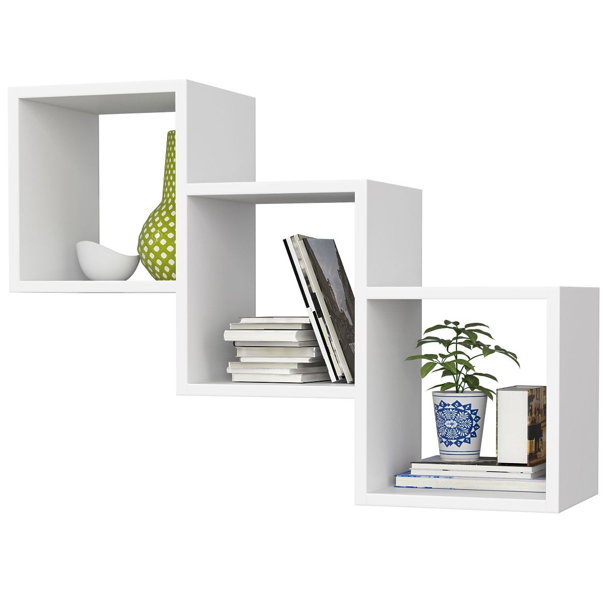 Funktional und gleichzeitig ermöglicht es die beliebige Gestaltung von Wohn- oder Büroräumen. Die in unserem Geschäft erhältlichen Wandregale Star in Weiß sind ideale Möbelstücke für eine praktische Raumgestaltung. An den Wänden aufgehängt, werden sie nicht nur zu deren Dekoration, sondern bieten auch zusätzlichen Raum, der nach eigenen Bedürfnissen gestaltet werden kann. Die optimale Größe der Regale und die unsichtbaren Metallaufhängungen machen sie zu einem integralen Bestandteil des Interieurs, ermöglichen gleichzeitig die Aufbewahrung von Dokumenten, Büchern oder anderen Kleinigkeiten, die unser Zuhause oder Büro schmücken. Hergestellt aus langlebiger laminierten Platte mit kratzfesten ABS-Kanten, können die Regale im täglichen Gebrauch lange dienen und behalten ihr effektives und modisches Aussehen. Ihr minimalistisches Design ermöglicht ihre Nutzung sowohl in klassisch gestalteten Innenräumen als auch in modernen Räumen und schafft einen Ort, an dem es angenehm ist, sich zu entspannen und zu arbeiten.