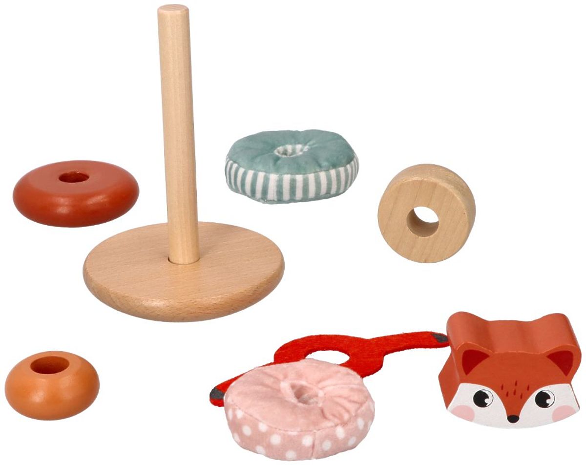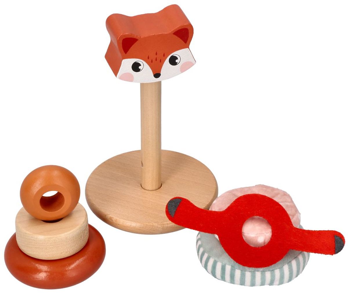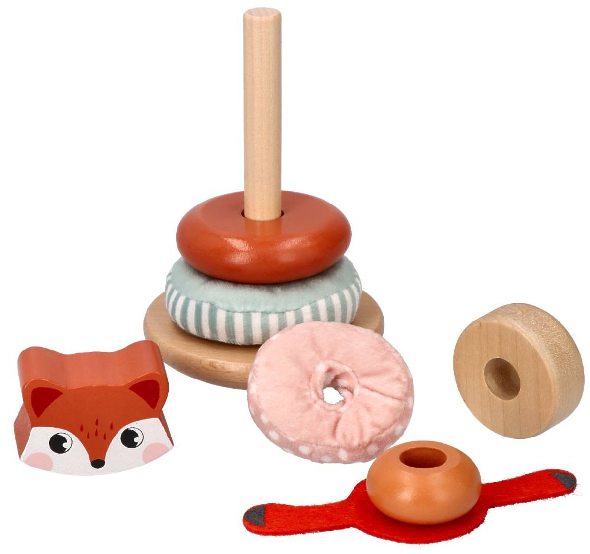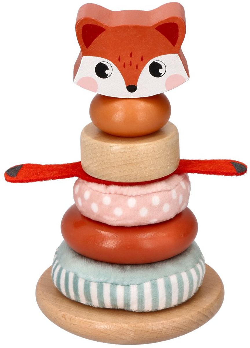 Die schöne Pyramide von Adam Toys ist ein klassisches Spielzeug für jedes kleine Kind. Sie besticht durch ihre schöne Farbgebung und ihr Design. Was dieses Spielzeug auszeichnet, ist die Kombination nicht nur verschiedener Farben, sondern vor allem der Materialien, aus denen die Ringe gefertigt sind. Der größte Ring besteht aus Naturholz, und andere Elemente sind sowohl aus Holz als auch aus Stoff. Die weichen Ringe sind aus Materialien gefertigt, die sowohl optisch als auch haptisch angenehm sind. Ein Element in Form von Fuchspfoten, das an der richtigen Stelle platziert werden muss, darf nicht fehlen. Die gesamte Pyramide wird von einem fröhlichen Fuchskopf gekrönt.