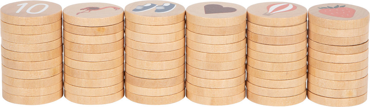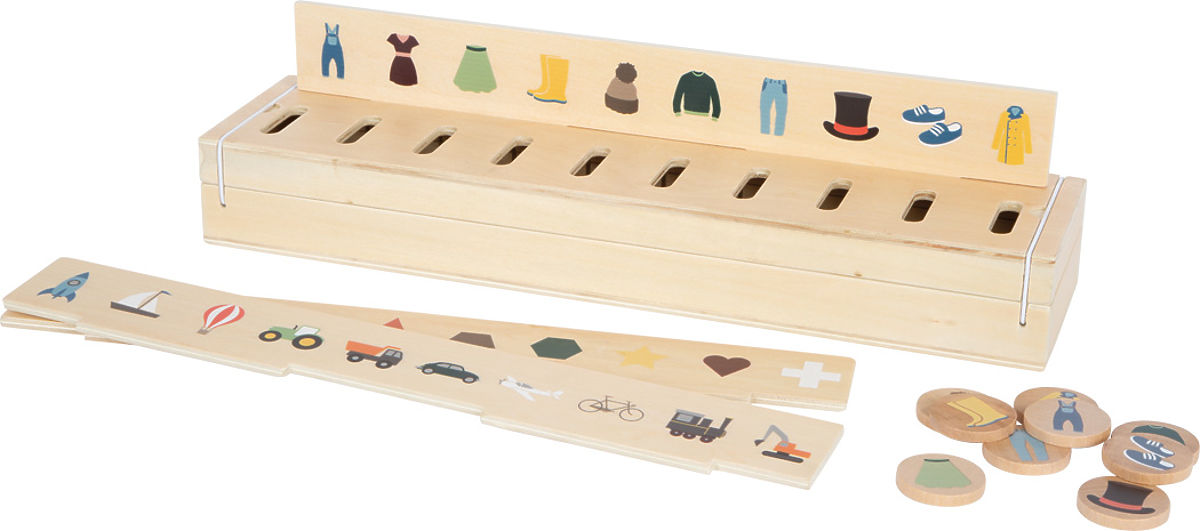 Dieser Holzbehälter bietet viele Motive zum Entdecken mit drei beidseitig bedruckten Einlegeplatten und 60 Bildmarken zum Thema Verkehr, Tiere, Zahlen, Formen, Kleidung, Obst und Gemüse. Beim Sortieren und Einlegen der Marken in die Box trainieren Kinder spielerisch ihre Feinmotorik sowie das Erkennen von Farben und Formen. Die Motive können auch zur Wortschatzentwicklung und zum spielerischen Lernen von Wörtern genutzt werden. Zehn separate Fächer im Holzbehälter und zwei Gummibandverschlüsse sorgen für eine sichere Aufbewahrung des Inhalts. Praktisches Lernspielzeug, auch ideal für unterwegs. Hauptmerkmale: drei beidseitig bedruckte Bildplatten, Möglichkeit zur Aufbewahrung im verschließbaren Behälter, Lernspielzeug auch für unterwegs geeignet, spielerisches Erkennen von Farben und Formen, Erweiterung des Wortschatzes