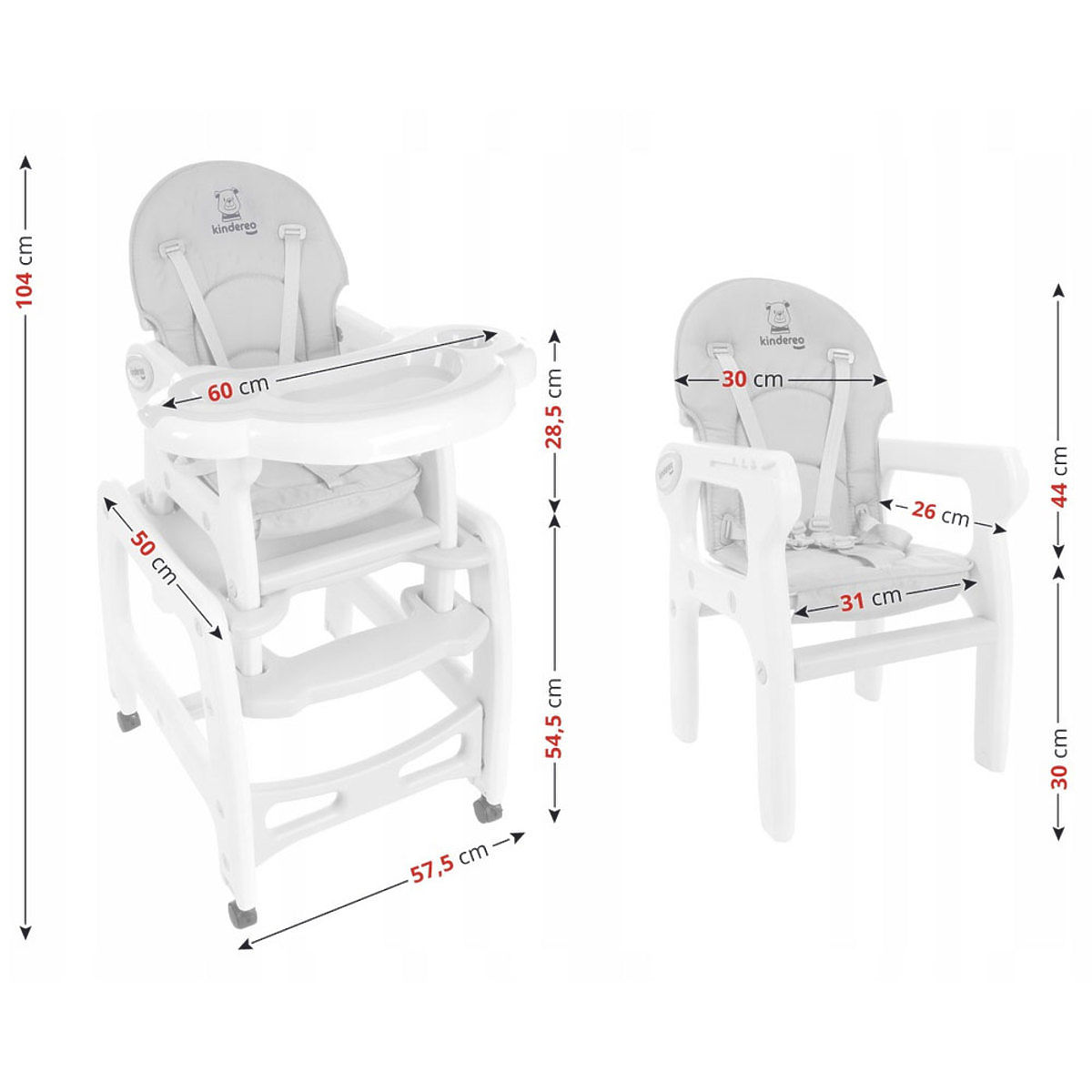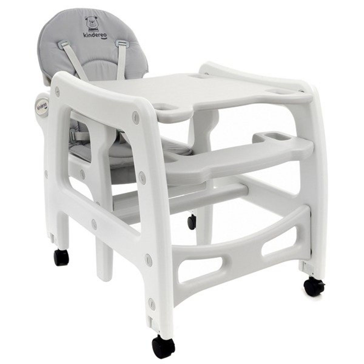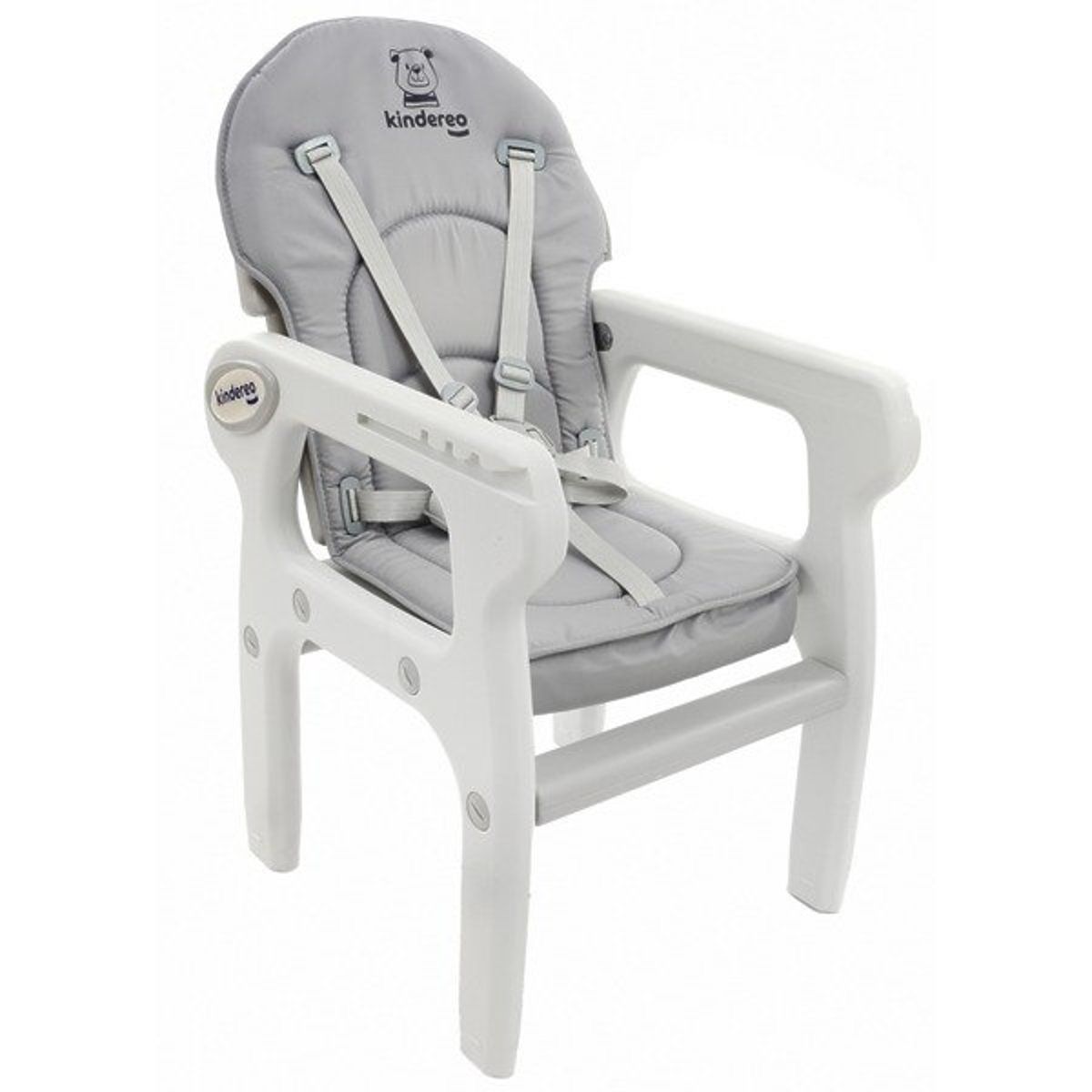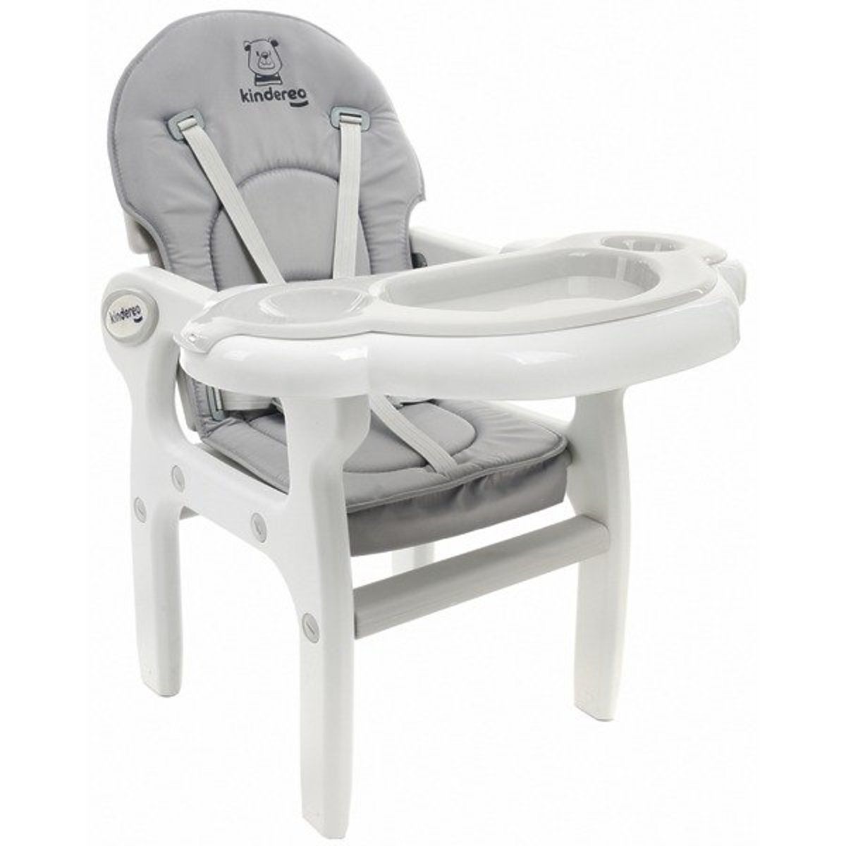 Modernes Design, hochwertige Verarbeitung und die Qualität der verwendeten Materialien zeichnen den Kinder-Esstischstuhl in Grau für Kinder ab 6 Monaten aus, der als Zeichentisch mit Stuhl verwendet werden kann.