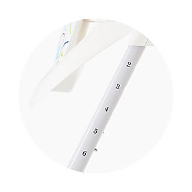 Des Weiteren hat er einen doppelten Tablet. Das obere Tablet kann entfernt und gereinigt werden. Das Tablett kann in drei Positionen eingestellt werden, je nach Alter des Kindes. In dem Sitz ist eine T- Sicherheitsbarriere, der das Kind am Herausfallen hindert.