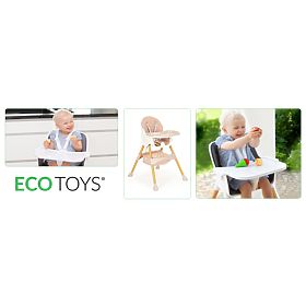 Der Hochstuhl erfüllt neben dem modernen Design perfekt seine Funktion. Er erleichtert es kleinen Kindern, gemeinsam mit Erwachsenen an einem Tisch zu essen, wodurch das Kind von den ersten Monaten an das richtige Verhalten beobachtet und lernt. Der Hochstuhl eignet sich auch als sicherer Spielplatz, da das große Tablett dem Kind ermöglicht, zu spielen, als wäre es ein Tisch.