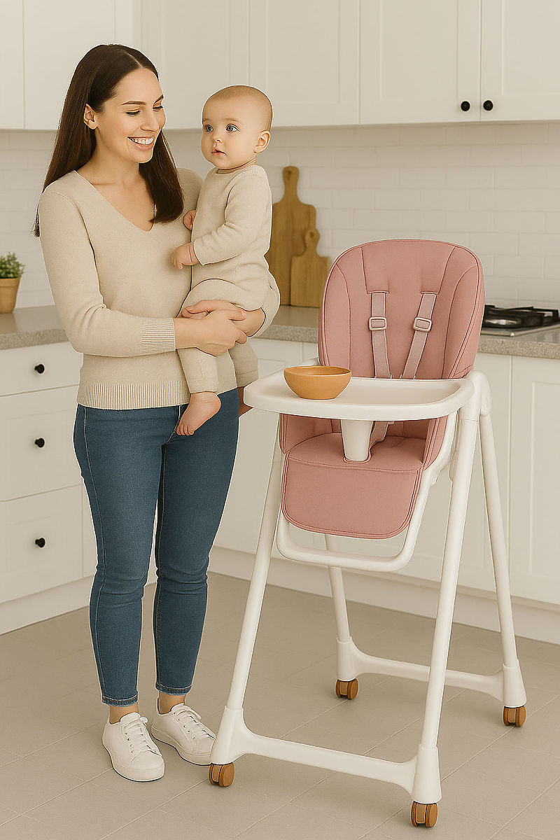Der Hochstuhl erfüllt neben seinem interessanten, modernen Design perfekt seine Funktion und garantiert eine sichere und bequeme Position während des Fütterns. Er ermöglicht es kleinen Kindern, gemeinsam mit Erwachsenen an einem Tisch zu essen, wodurch das Kind schon in den ersten Monaten richtiges Verhalten beobachtet und lernt.
