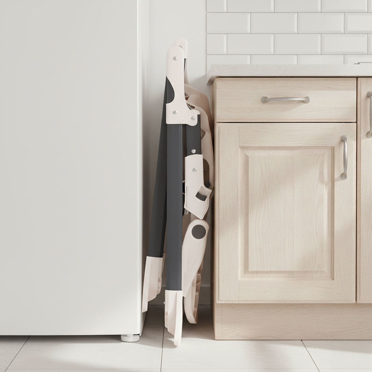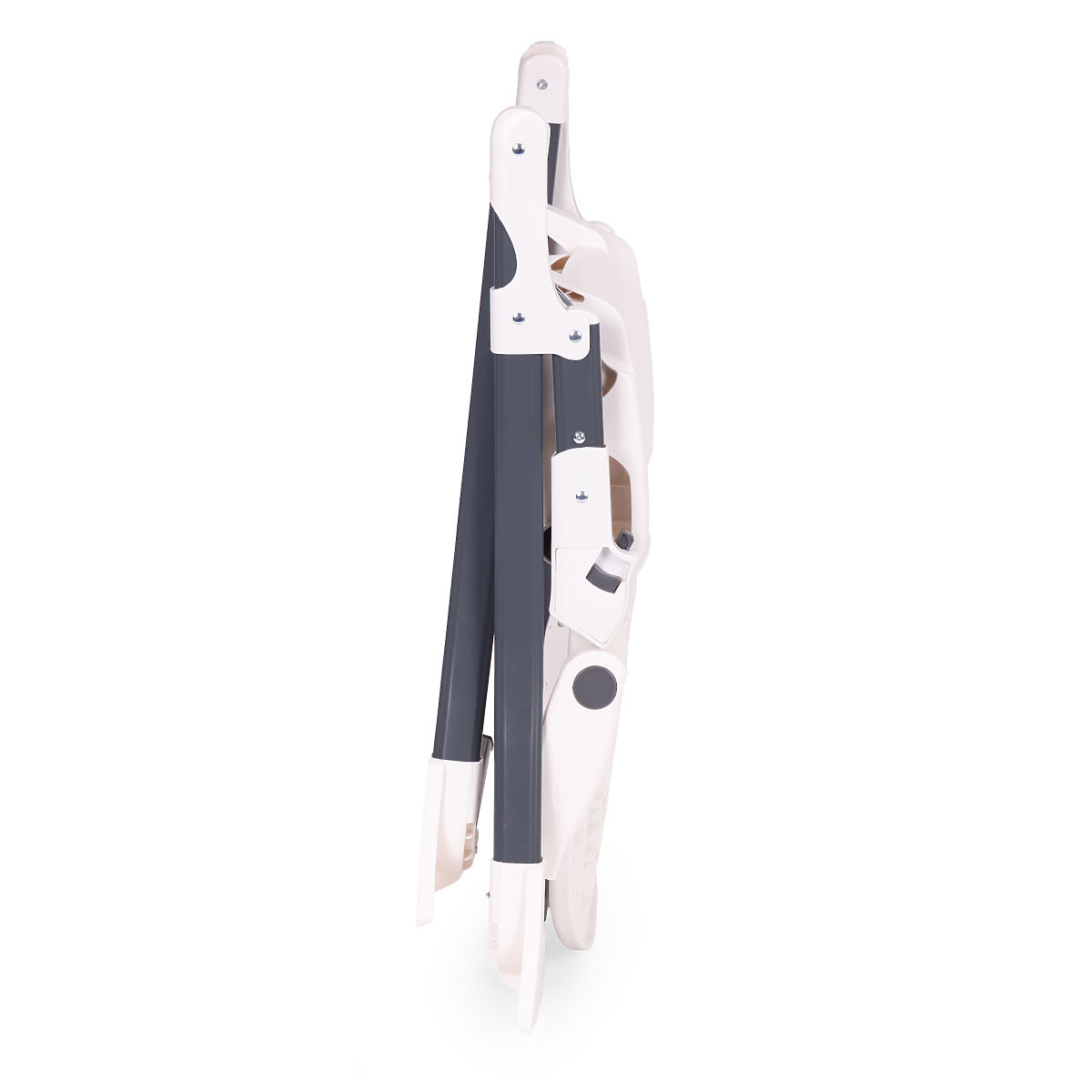 SCHNELLES KLAPPSYSTEMKlappfunktion ermöglicht es, den Hochstuhl einfach zusammenzuklappen, wenn er nicht benutzt wird. Dank dieser Funktionalität spart man Platz bei der Lagerung des Hochstuhls und kann ihn problemlos mitnehmen auf einen Familienausflug. Es ist eine praktische Lösung, ideal für kleine Wohnungen und Reisen.