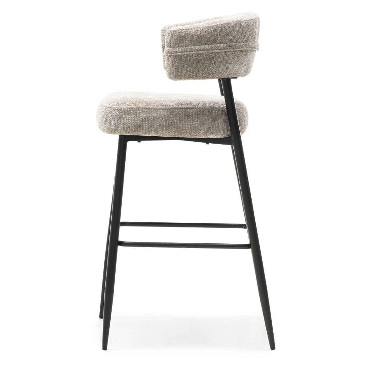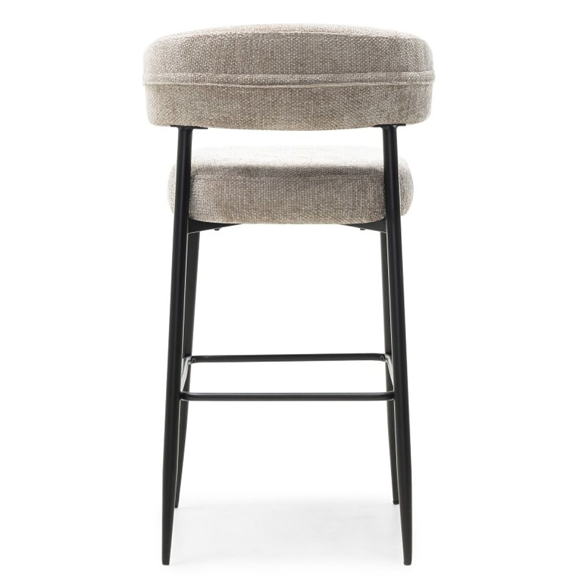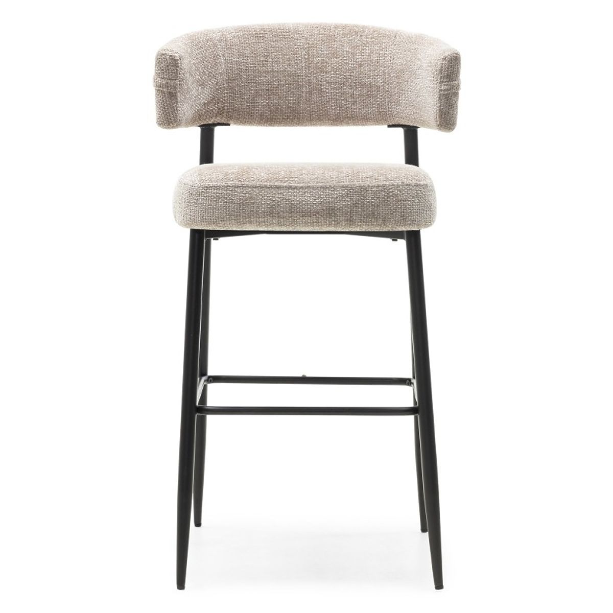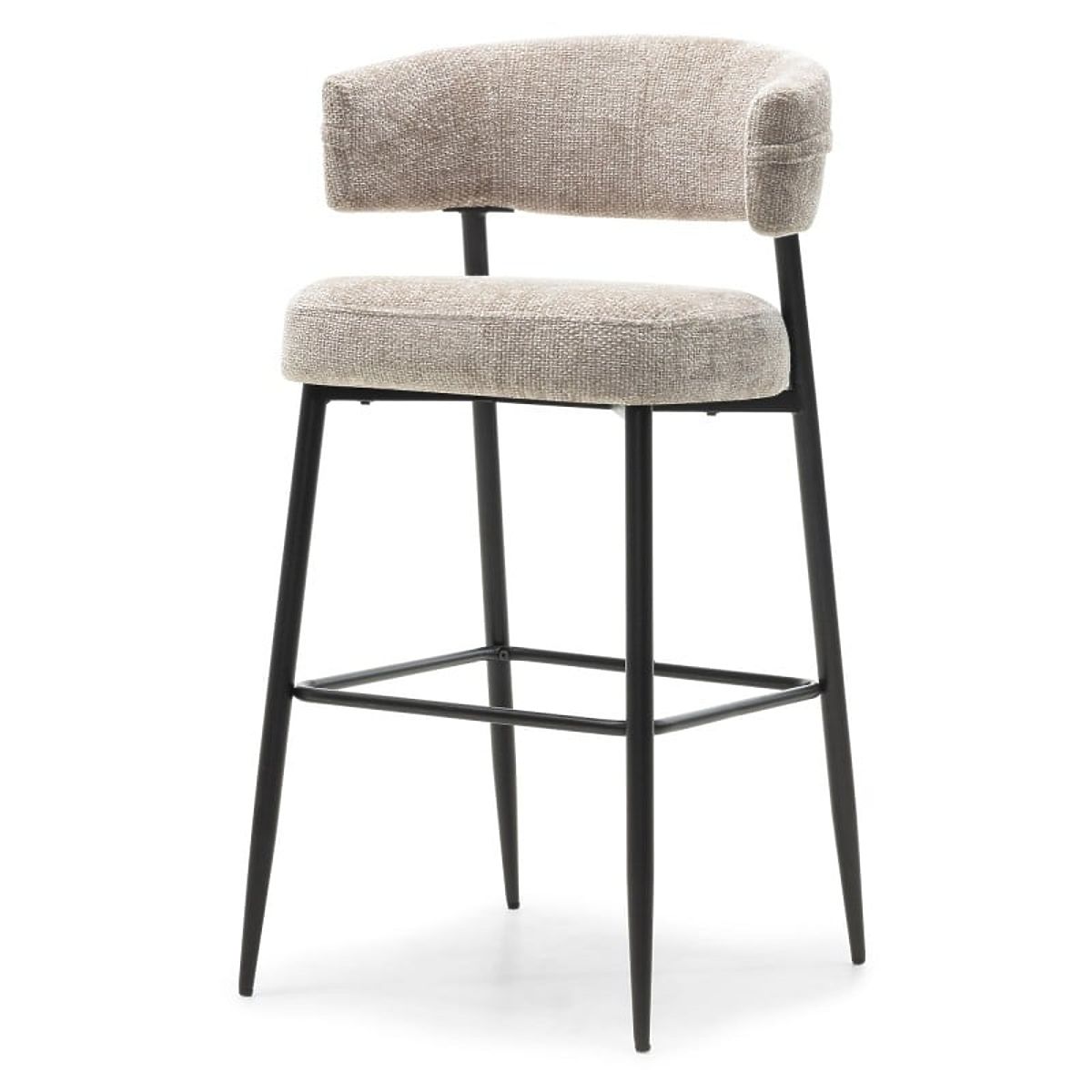 Eleganter Barhocker Rosario mit beigem Stoffbezug und schwarzen Metallbeinen. .. mehr