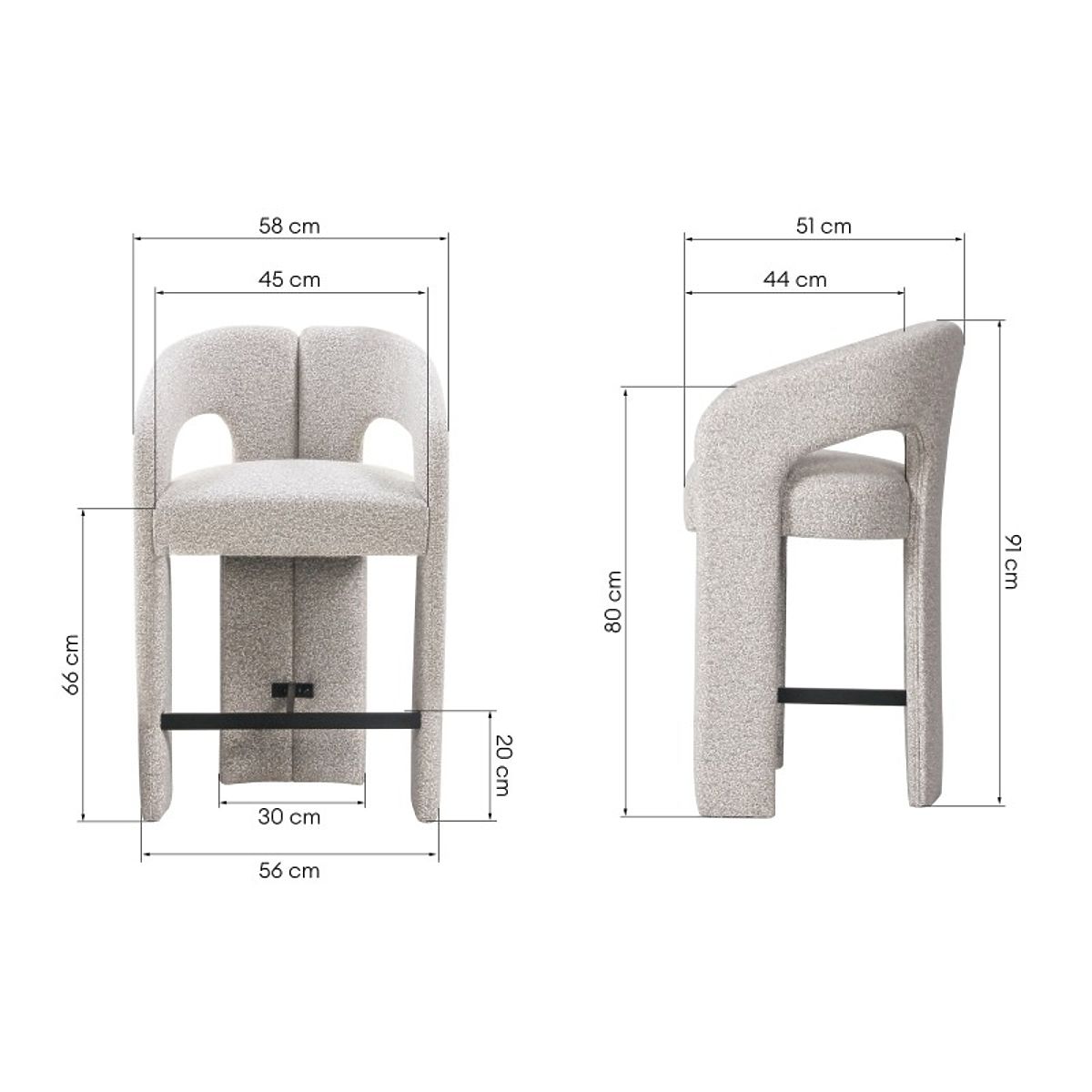 Der Barhocker Castelo vereint modernen Minimalismus mit gemütlicher Eleganz. Der weiche Stoff, die abgerundete Form und die bequemen Armlehnen sorgen für täglichen Komfort, während die durchdachten Details ihn ideal für die Küche oder das Esszimmer machen.