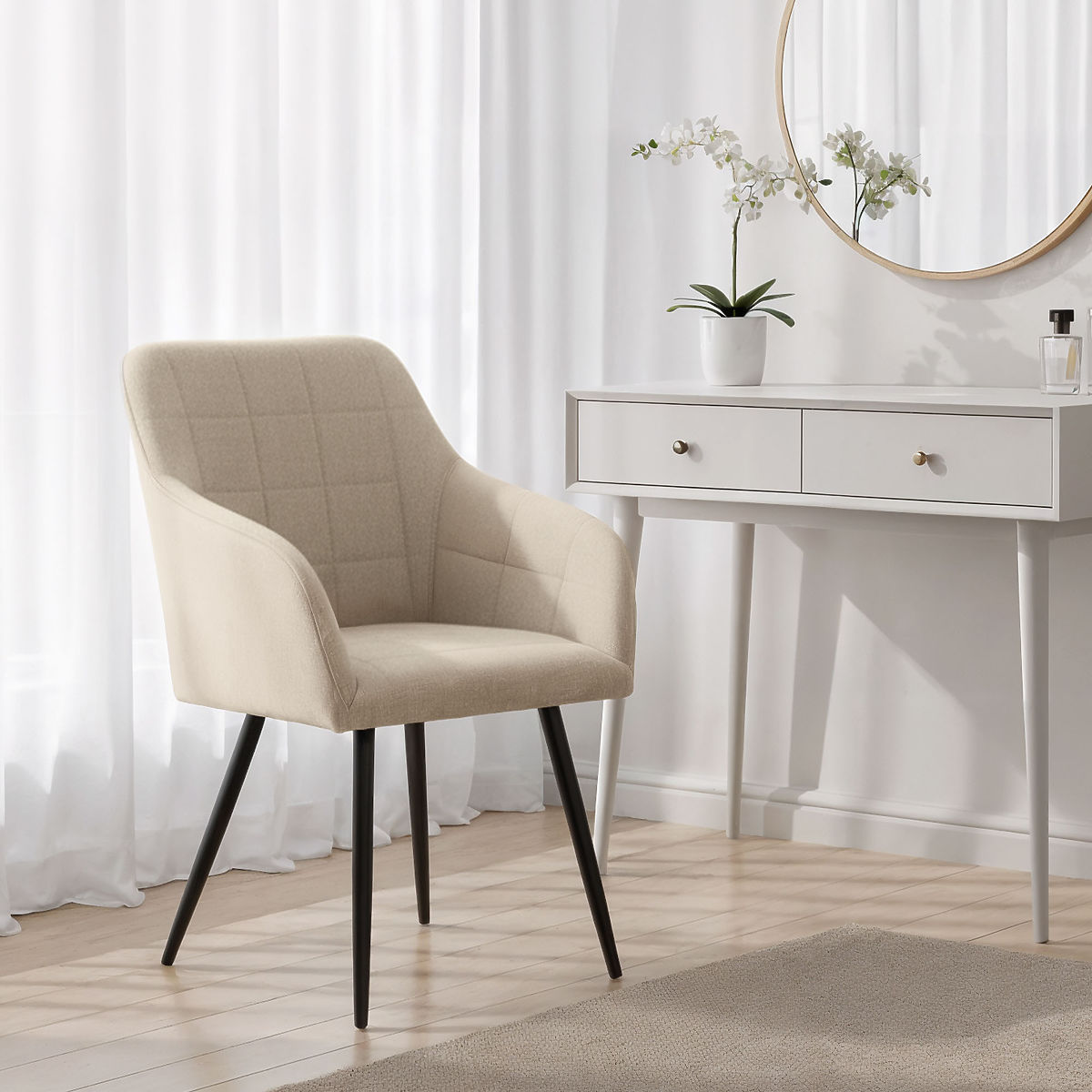 Banaby.at » Möbel / Esszimmer / Esszimmerstühle / 4x Gepolsterter Stuhl mit quadratischer Steppung Beige LUXANO Schwarze Beine Stoff Lumos