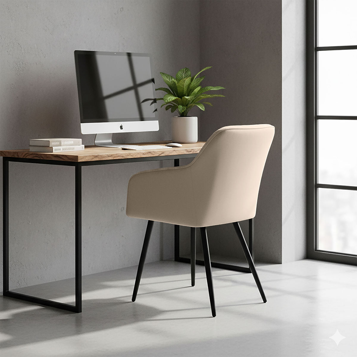 Beiger gepolsterter Stuhl LUXANO mit schwarzem Gestell. .. mehr