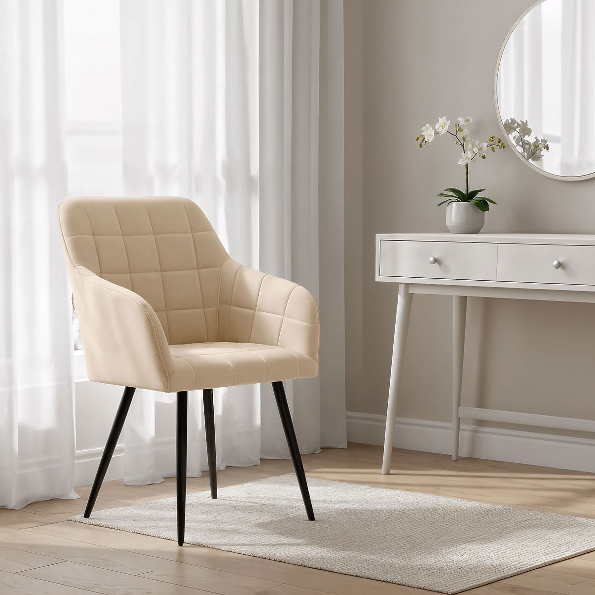 Banaby.at » Möbel / Esszimmer / Esszimmerstühle / 4x Gepolsterter Stuhl mit quadratischer Steppung Beige LUXANO Schwarze Beine