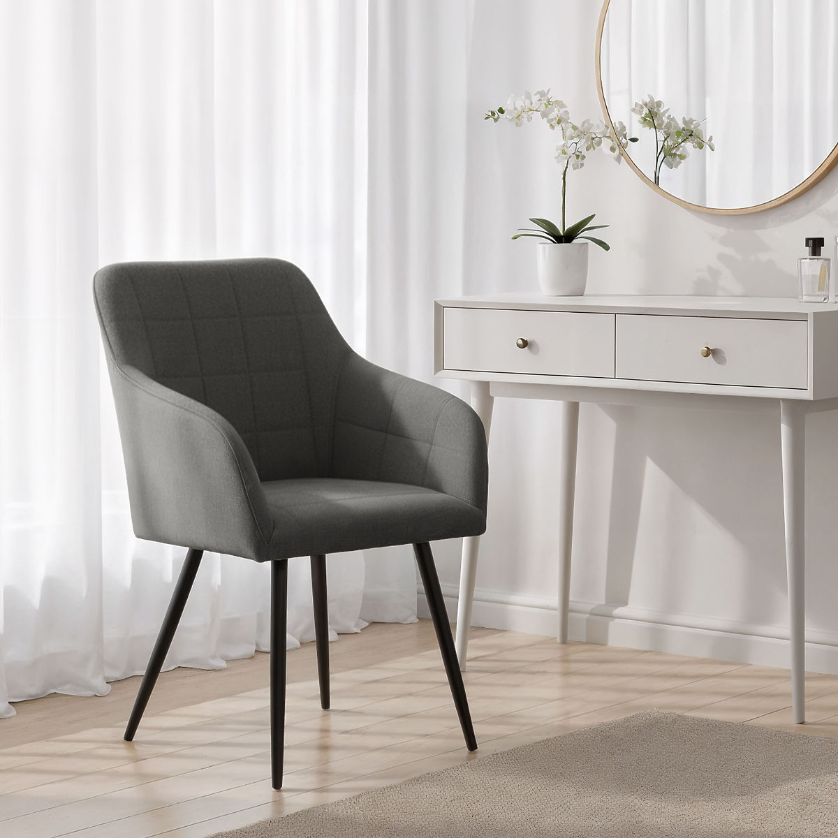 Banaby.at » Möbel / Esszimmer / Esszimmerstühle / 4x Gepolsterter Stuhl mit quadratischer Steppung Dunkelgraphit LUXANO Schwarze Beine Stoff Lumos