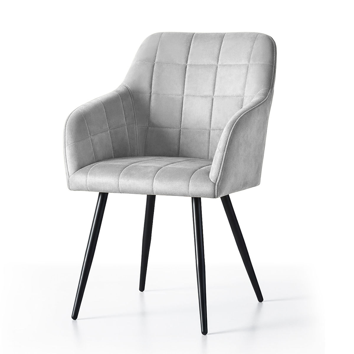 Banaby.at » Möbel / Esszimmer / Esszimmerstühle / 4x Gepolsterter Stuhl mit quadratischer Steppung Grau LUXANO Schwarze Beine