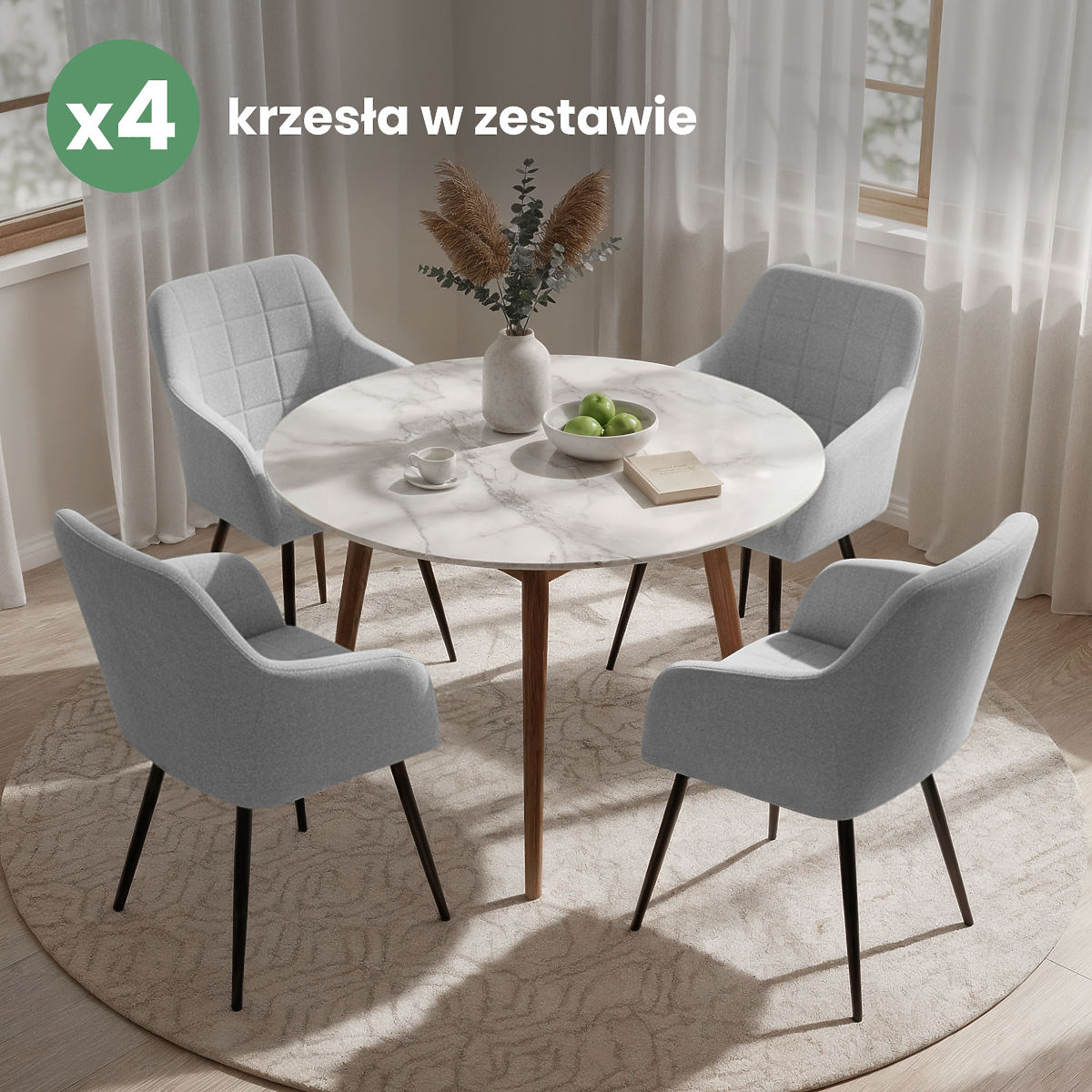 Banaby.at » Möbel / Esszimmer / Esszimmerstühle / 4x Gepolsterter Stuhl mit quadratischer Steppung Hellgrau LUXANO Schwarze Beine Stoff Lumos