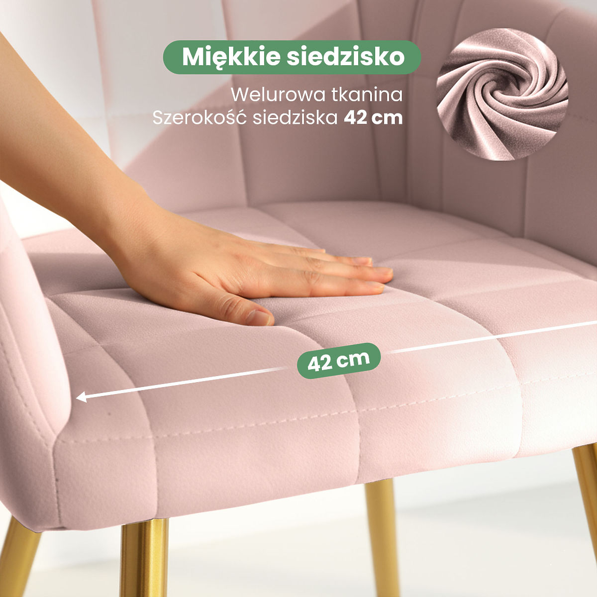 Gepolsterter Esszimmerstuhl LUXANO in Puderrosa mit goldenen Beinen. .. mehr
