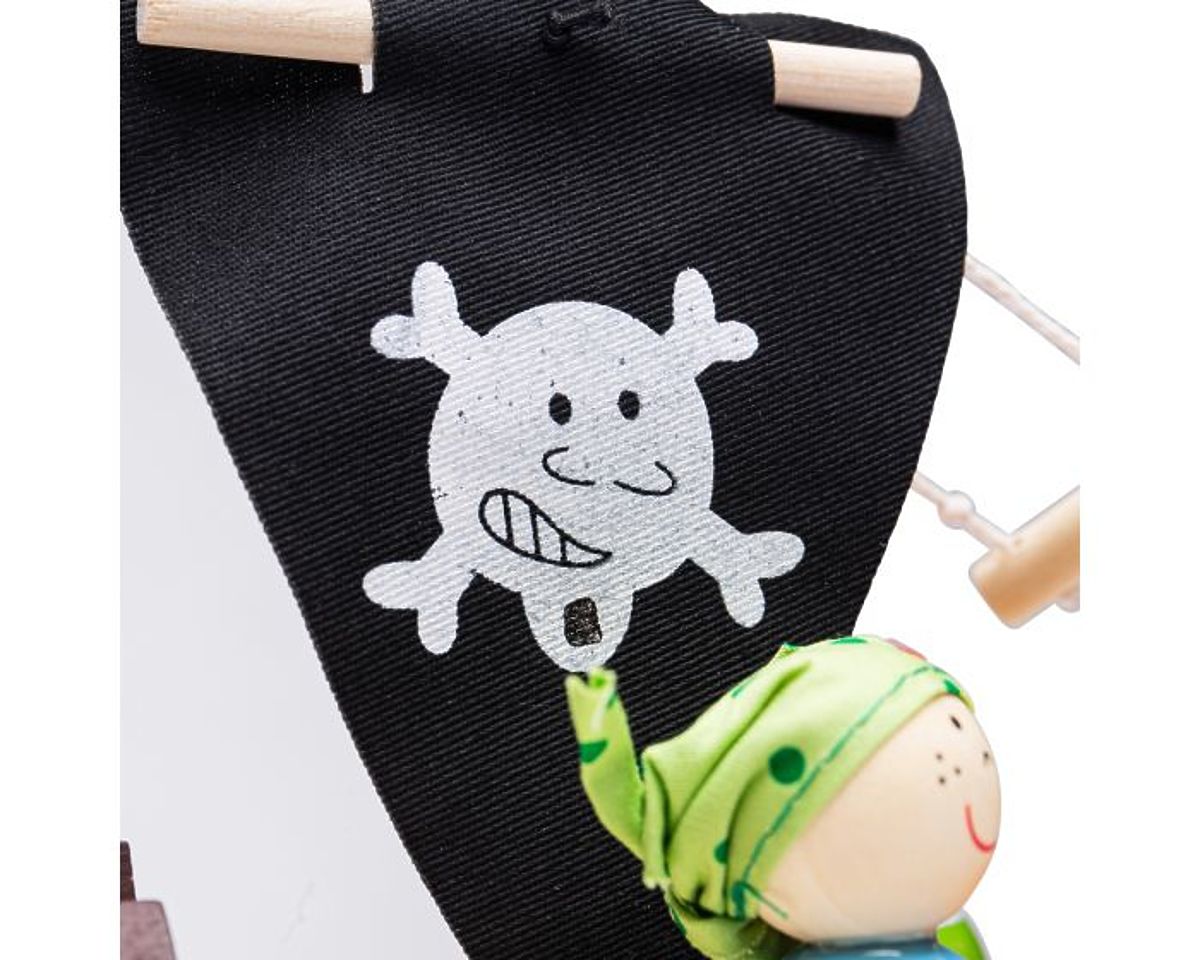 Ahoi Kapitän! Fröhliche Matrosen werden dieses hölzerne Mini-Piratenschiff lieben, das mit einem Kapitän, zwei Piraten, einem Schiff, einem Anker, einer .. mehr