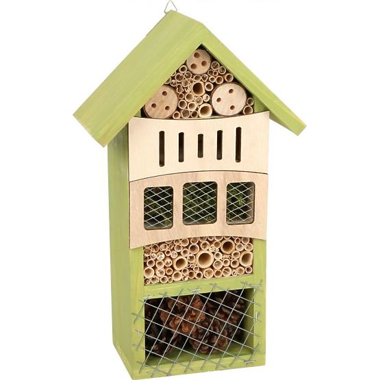 Ein Insektenhaus aus Holz schafft in Ihrem Garten einen Zufluchtsort für Nützlinge und ermöglicht Ihnen die Beobachtung der kleinen Lebewesen. Das Haus besteht .. mehr