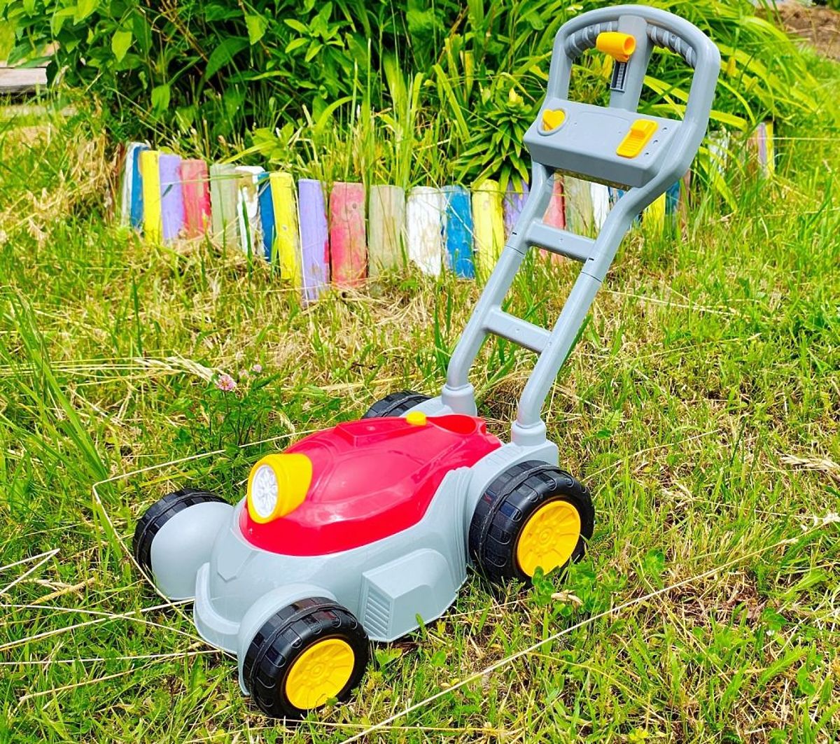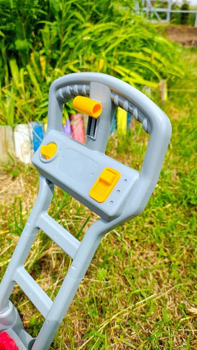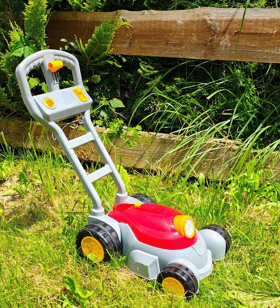 • Das Spielzeug ermutigt zum Gehen und zur Aktivität im Freien. Das bloße Schieben des Rasenmähers hat keinen Einfluss auf die Funktion der Blasen.