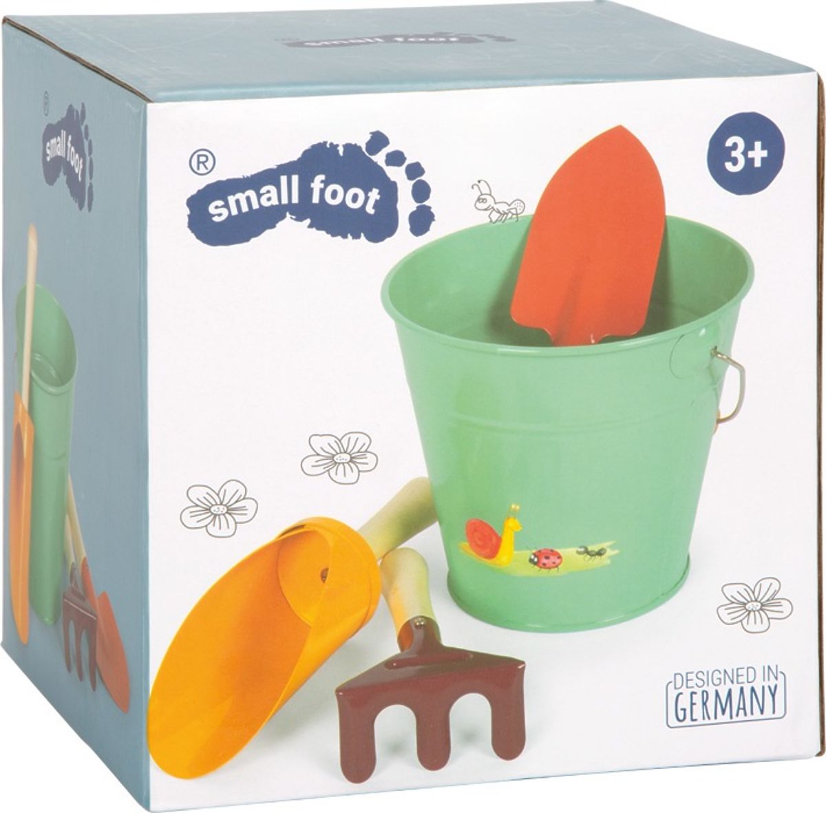 Das Gartengeräteset mit Eimer „Tiny Garden“ erfreut alle kleinen Gärtner und Sandburgenbauer. Robuste Werkzeuge aus Metall und Holz sind genau für Kinderhände konzipiert, und der Metalleimer mit fröhlichen Tiermotiven verleiht dem Set einen spielerischen Touch. Ob die Kinder graben, pflanzen, Wasser tragen oder eine Sandburg formen, sie haben alles Notwendige griffbereit. Dank der praktischen Größe lassen sie sich leicht transportieren und überall einsetzen – vom Garten bis zum Strand. Der Metalleimer ist zudem ein echter Helfer – ideal für Wasser, Sand und Erde. Hauptmerkmale: 4-teiliges Set: 2x Schaufel, Rechen, Metalleimerrobuste Ausführung aus Metall und Holz, ideal für kleine Händetrendige Farben und niedliche Tiermotivefördert Motorik, Kreativität und Naturverbundenheitvielseitig einsetzbar – zum Pflanzen, Graben, Formen und Transportierengeeignet für Garten, Sandkasten und Strand