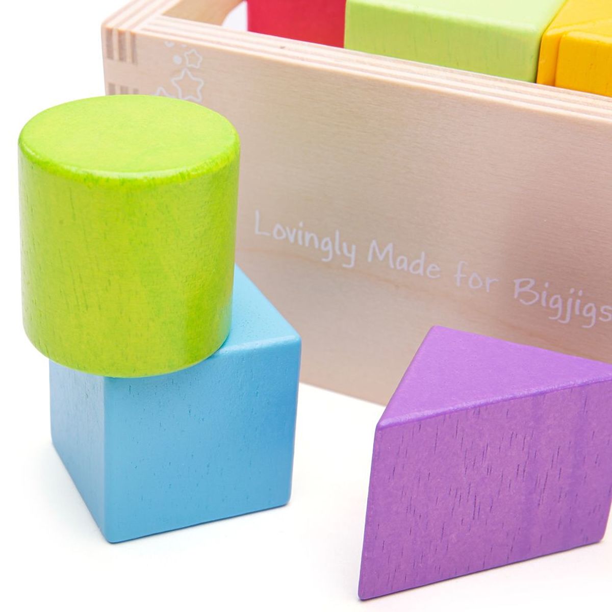 Bunte Holzbausteine zur Förderung von Geschicklichkeit und Koordination. .. mehr